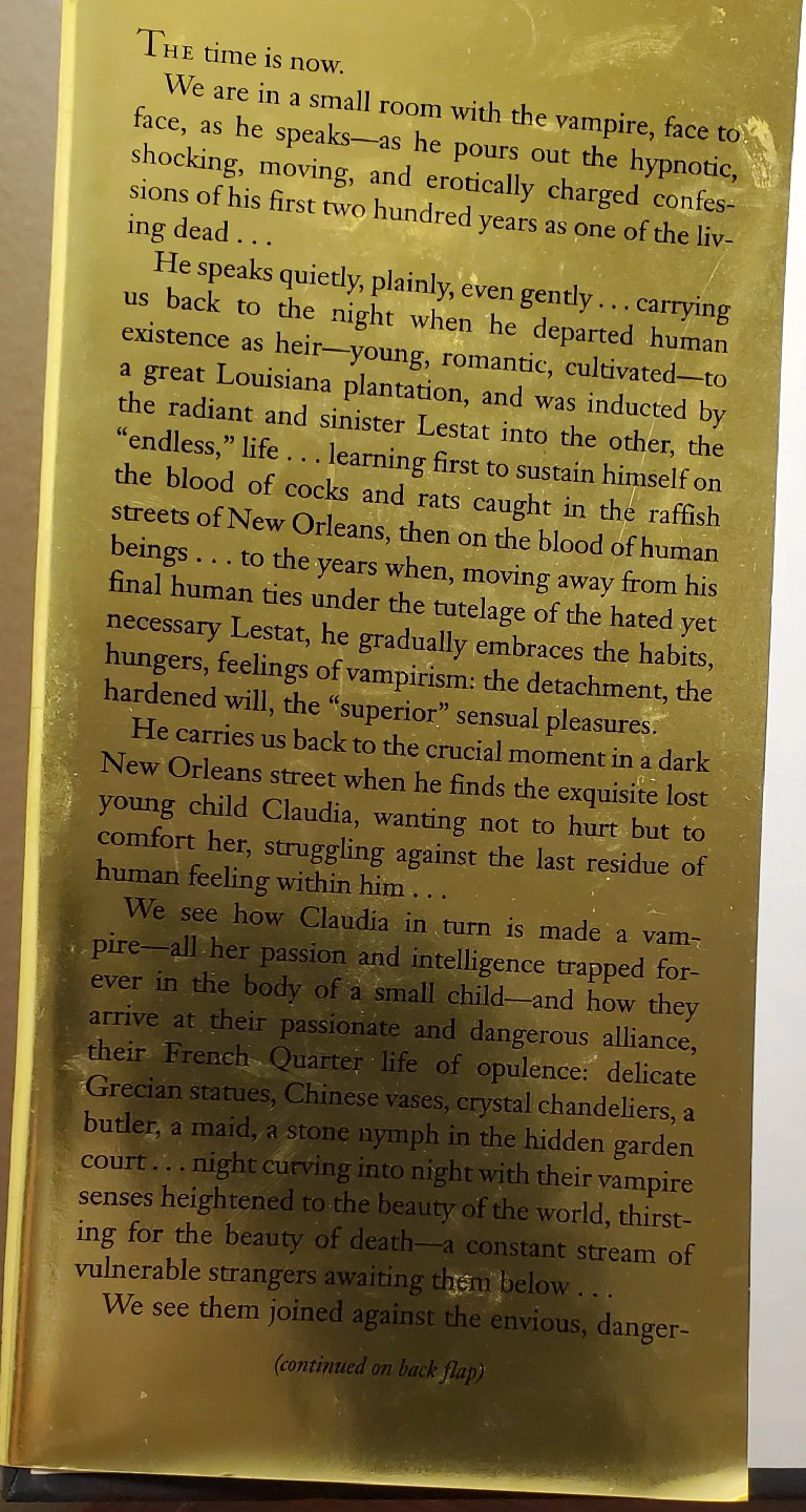 Selling a copy of "Interview With The Vampire" by Anne Rice! It's a novel that takes you into a world of vampires, exploring themes of immortality and the human condition. A classic read for anyone interested in gothic horror and vampire lore