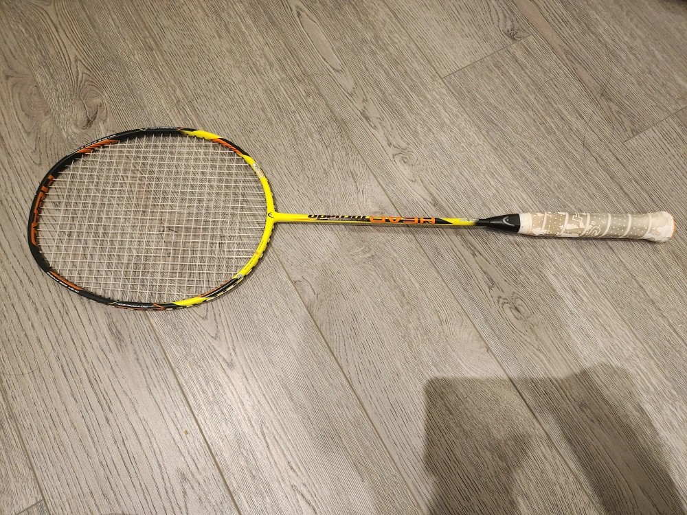 Selling a used Head Tornado badminton racket. It's got some wear on the grip, as you can see in the pictures. It's very light and still a great racket for playing badminton!