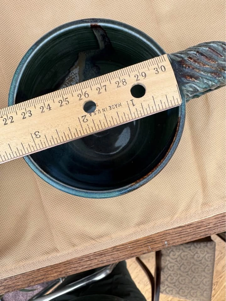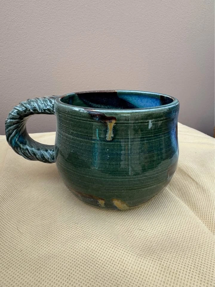 Beautiful handcrafted pottery mug. Signed by the artist. Gorgeous glazing on this piece. See photos for measurements.