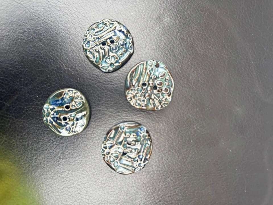 Large pottery buttons suitable for embellishing crocheted or knitted items or other crafts. Approximately 1 1/2 inches. Never used. The price is for all four, more are available please ask. Cash only please. No holds. Pick up is available in the Kingston Road and Danforth area.