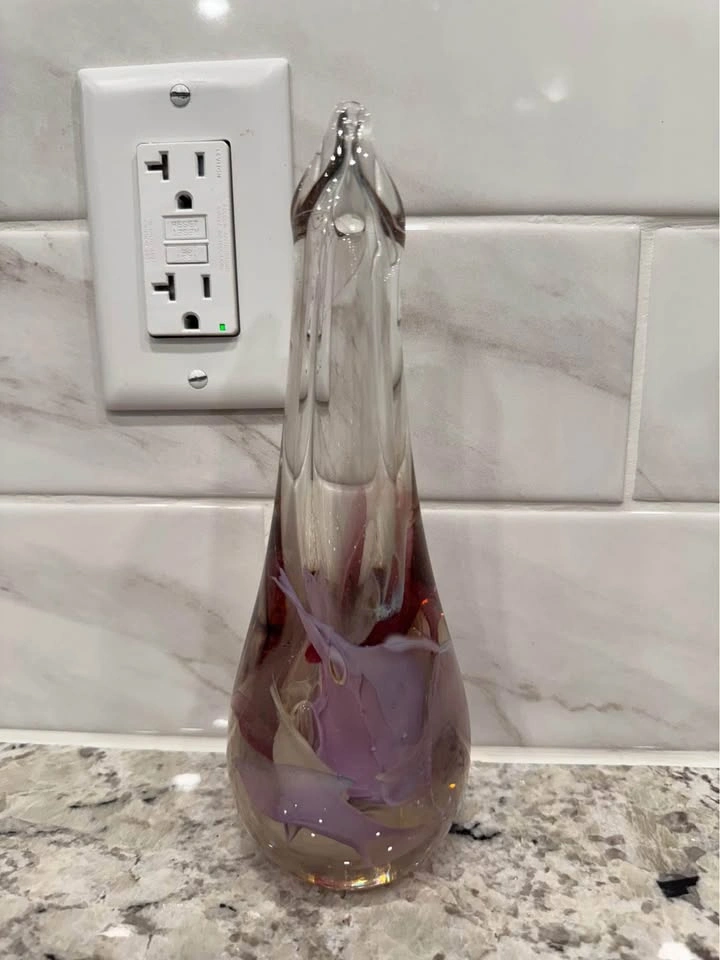 Gorgeous heavy bud vase. Nine inches tall. Photos do not do justice.