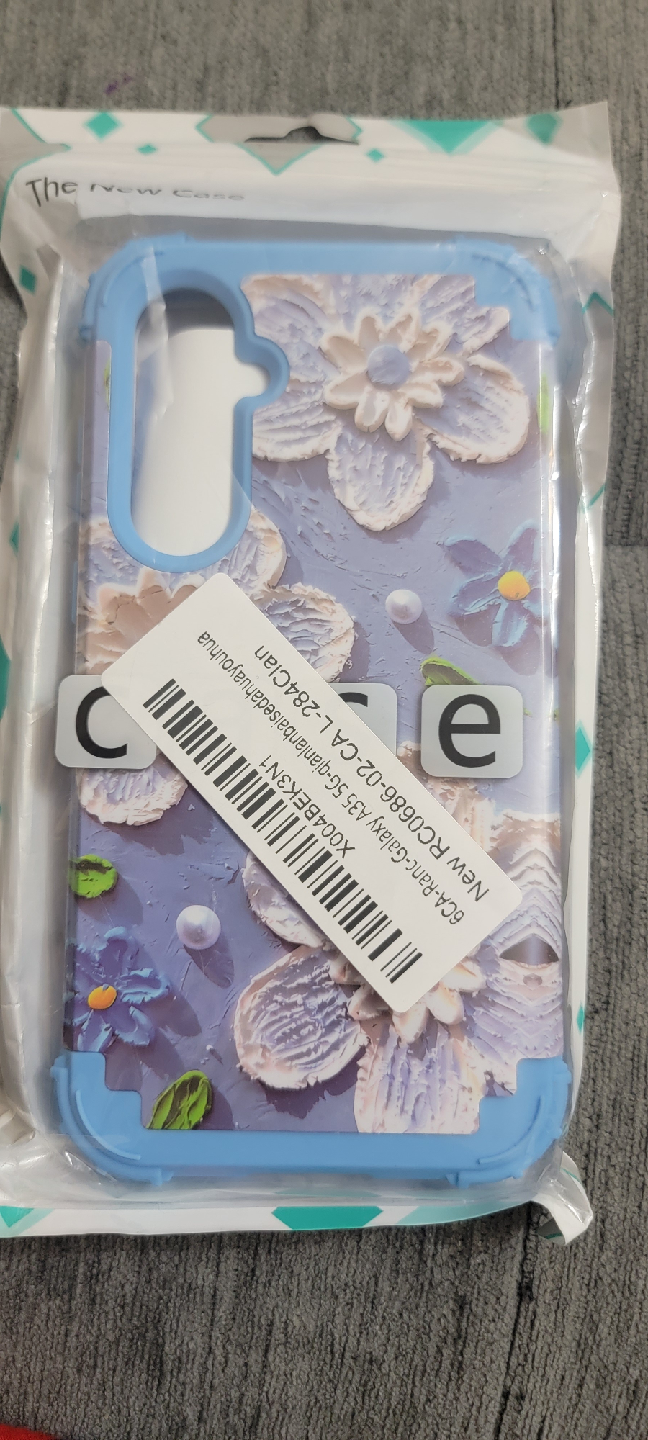 Selling a brand new phone case for the Samsung Galaxy A35 5G. It has a beautiful floral design with a light blue trim. The case is still in its original packaging and is of best quality!