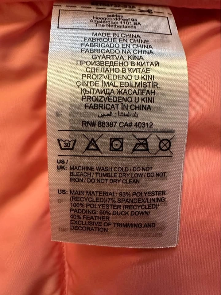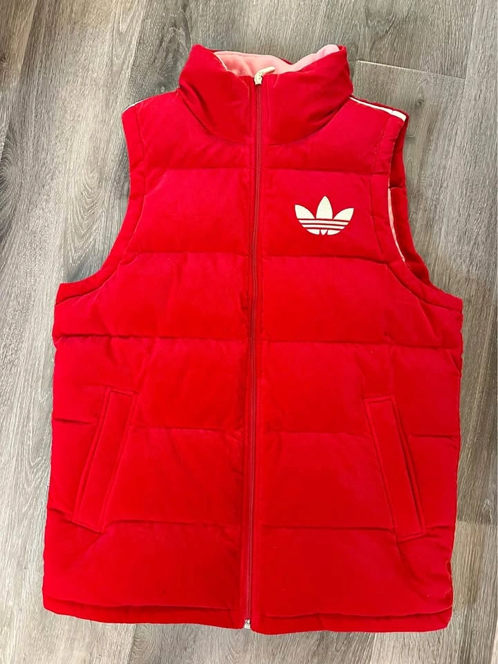 10Brand : Adidas Color : Red / Pink Size : Small ( but can fit up to Large size ) Condition: Worn once Only Material : Velvet with Duck Down Pick up and Cash only