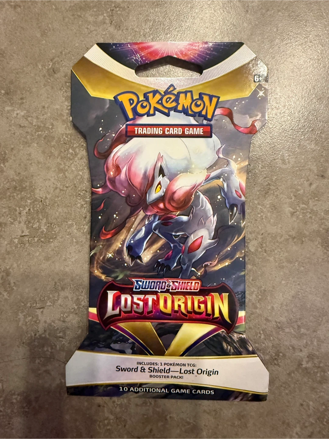 Selling a Pokémon Trading Card Game Sword & Shield Lost Origin booster pack! This pack includes 10 additional game cards and contains over 190 cards. Each Pokémon TCG: Sword & Shield - Lost Origin booster pack contains 10 cards and either 1 basic Energy card or 1 VSTAR marker. Expand your Pokemon Trading Card Game collection with 10 additional game cards booster packs