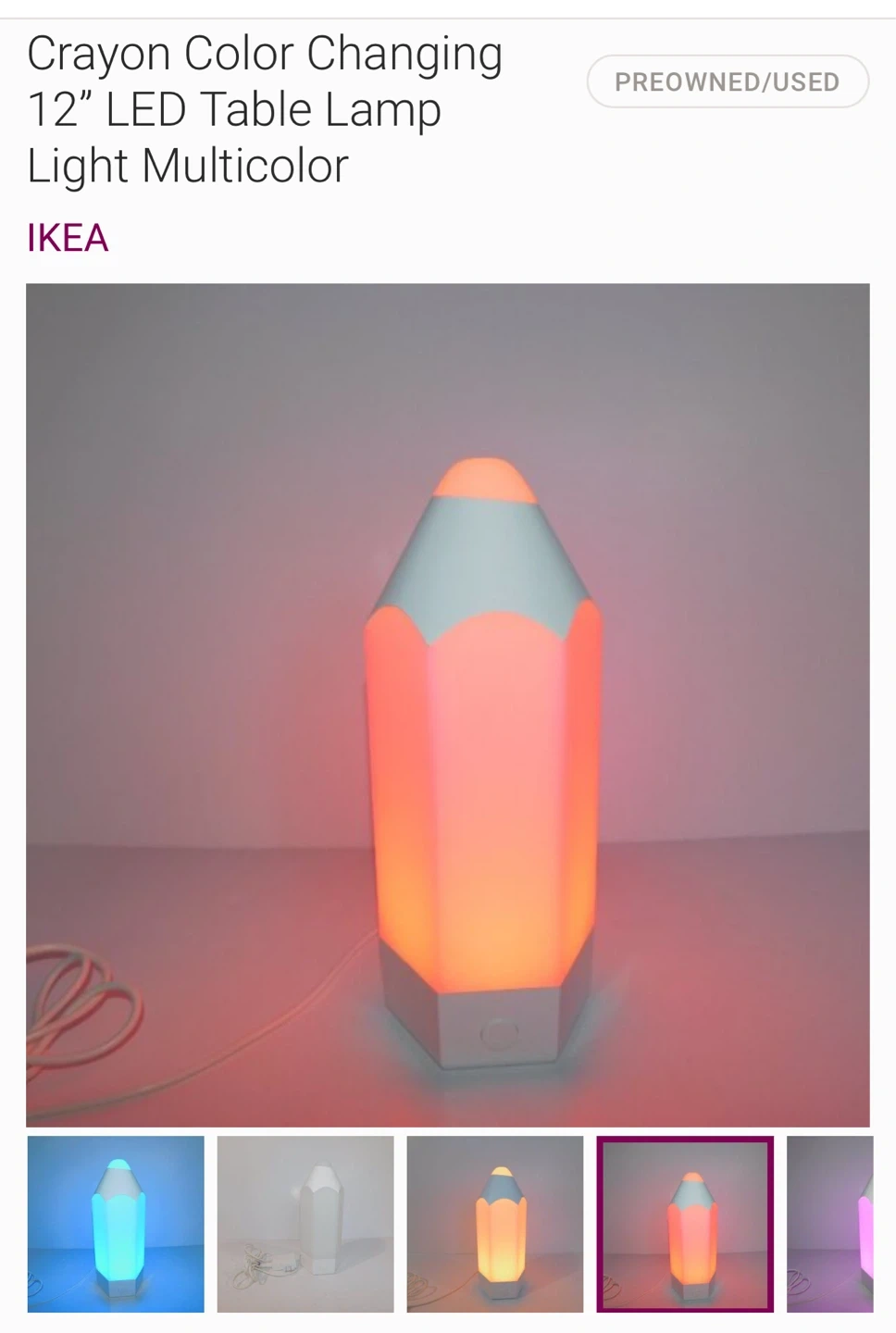 10Add a fun touch to any room with this IKEA Crayon Colour Changing 12" LED Table Lamp! It's in great condition and ready to brighten up your space with its multicolour light