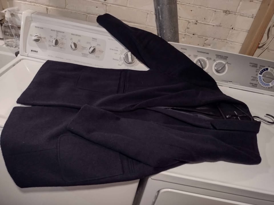 Excellent used condition Dorothy Perkins blazer cut navy peacoat, synthetic/wool blend. Cleaned and ironed. Feels like soft wool, light and water resistant but very warm. Two deep pockets in the front.