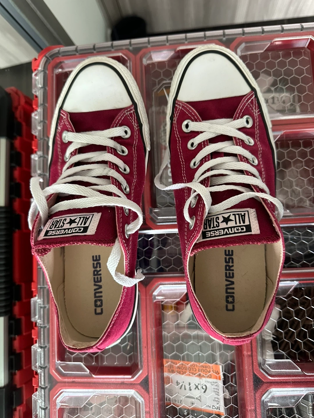Selling a pair of Converse All Star low top sneakers in a nice maroon colour! These are a US men's size 7, which is a women's size 9. They're in great shape. Pick up in Brentwood Concord