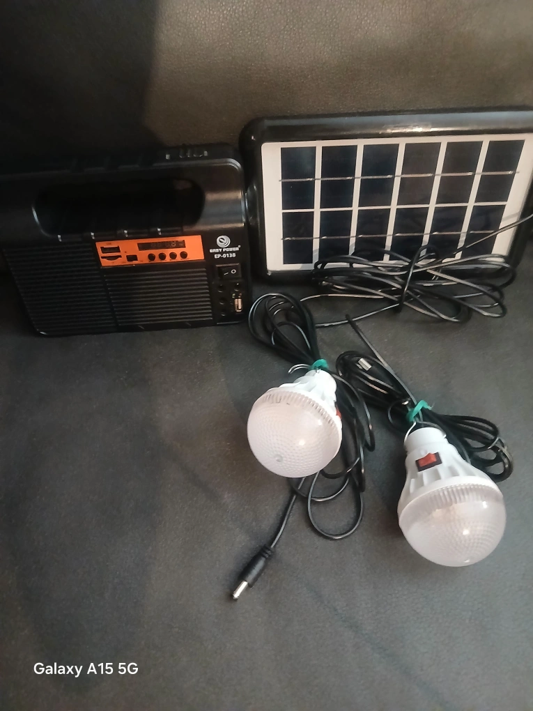 Selling an Easy Power EP-0138 solar power system. It comes with a solar panel and two lights. Also includes 3 purple XK 18650 1200mAh 3.7V batteries which can be upgraded to 3*3500 mAh. It has Bluetooth, FM Radio, TF card, and a charging port for all of your devices.