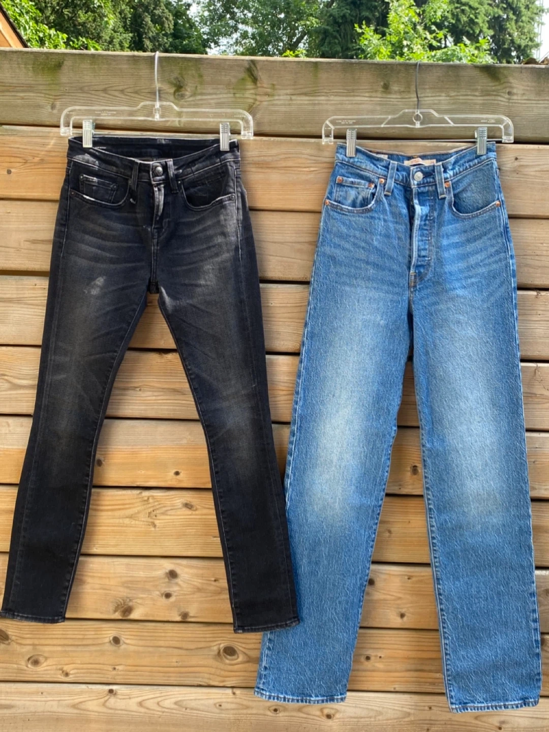 The Levi’s are 24” waist as well and are the Ribcage Straight style