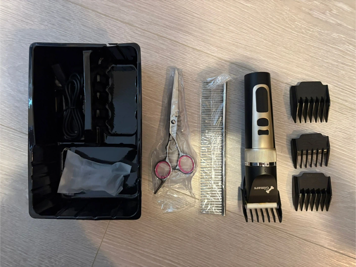 33Selling a Gimars professional hair clipper set! It comes with everything you see in the photos, including the clipper, scissors, comb, various guard sizes, and the charging cable. Box is included too! Only used once.
