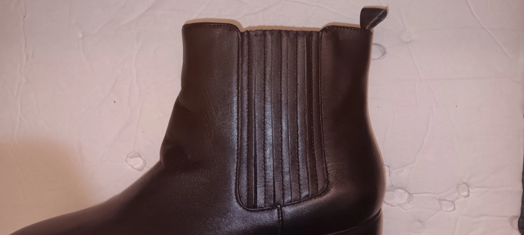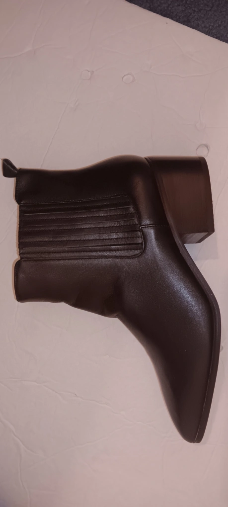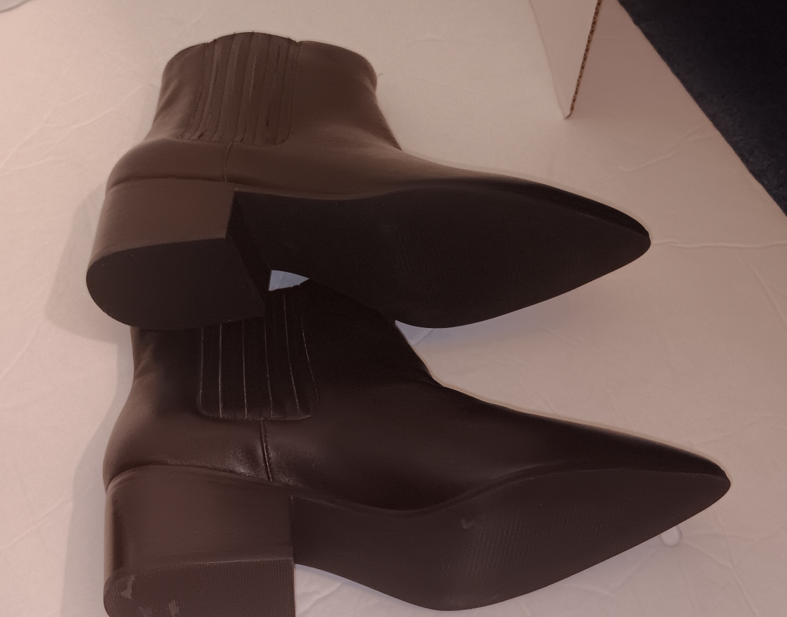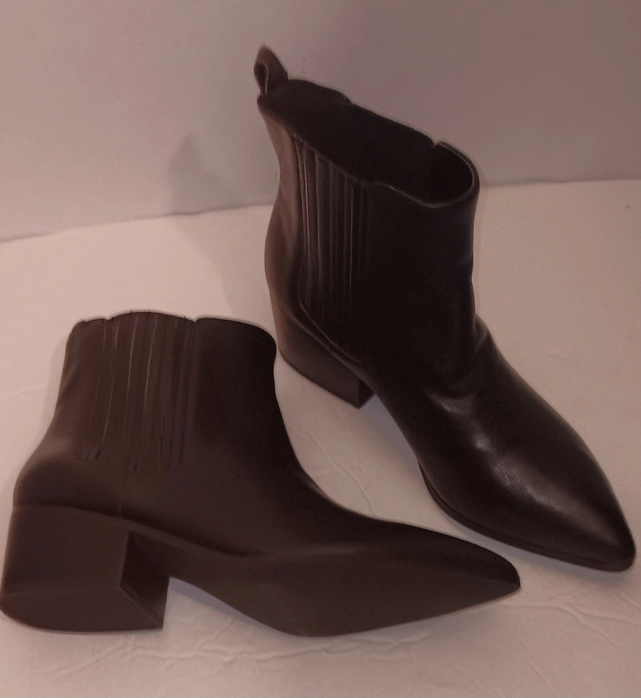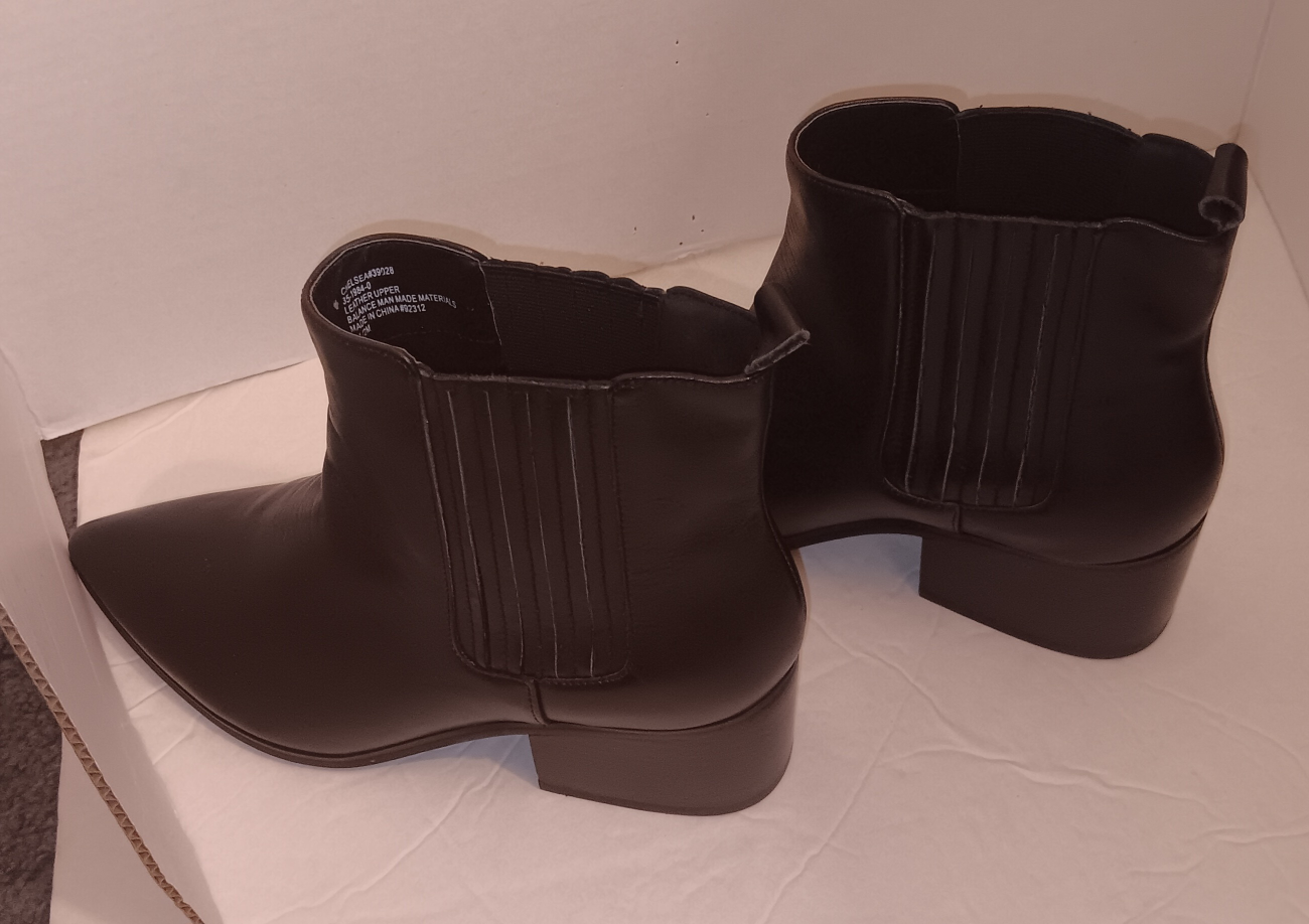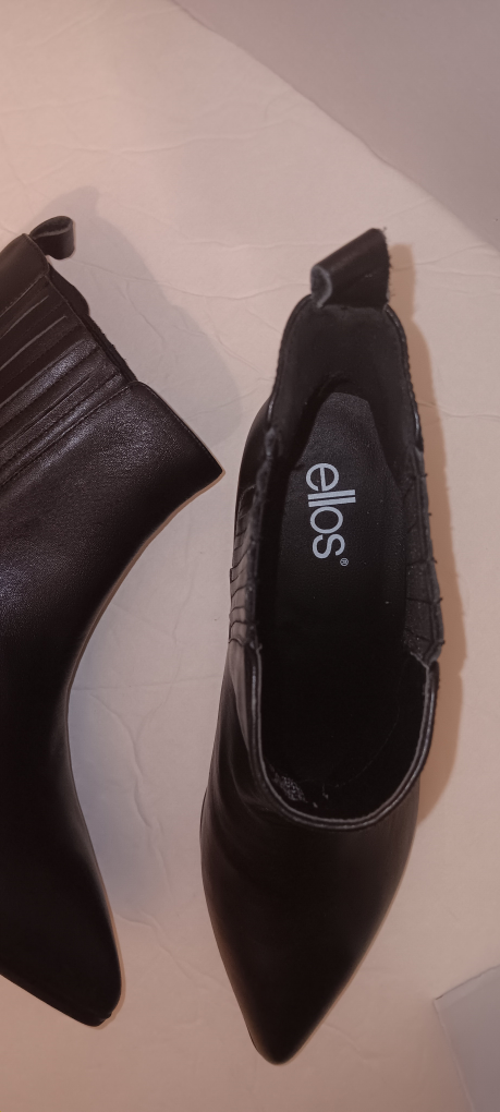 Selling a pair of Ellos black Leather booties in size 7 1/2M. These boots LEATHER and brand new! They have a classic Chelsea boot style with a sleek, pointed toe and a comfortable block heel.