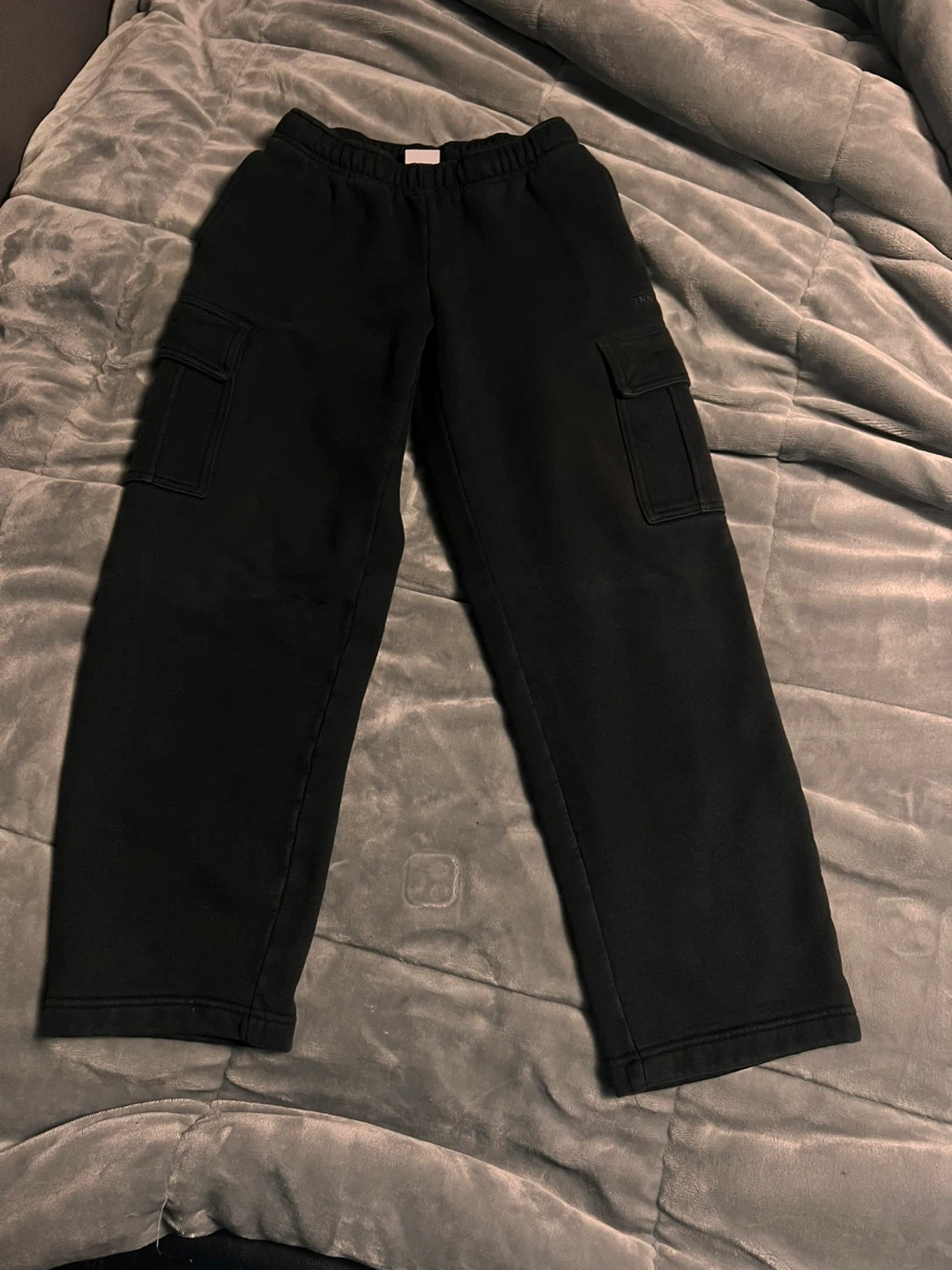 Selling a pair of black cargo sweatpants from TNA. They are in great condition and super comfy for lounging around or running errands!