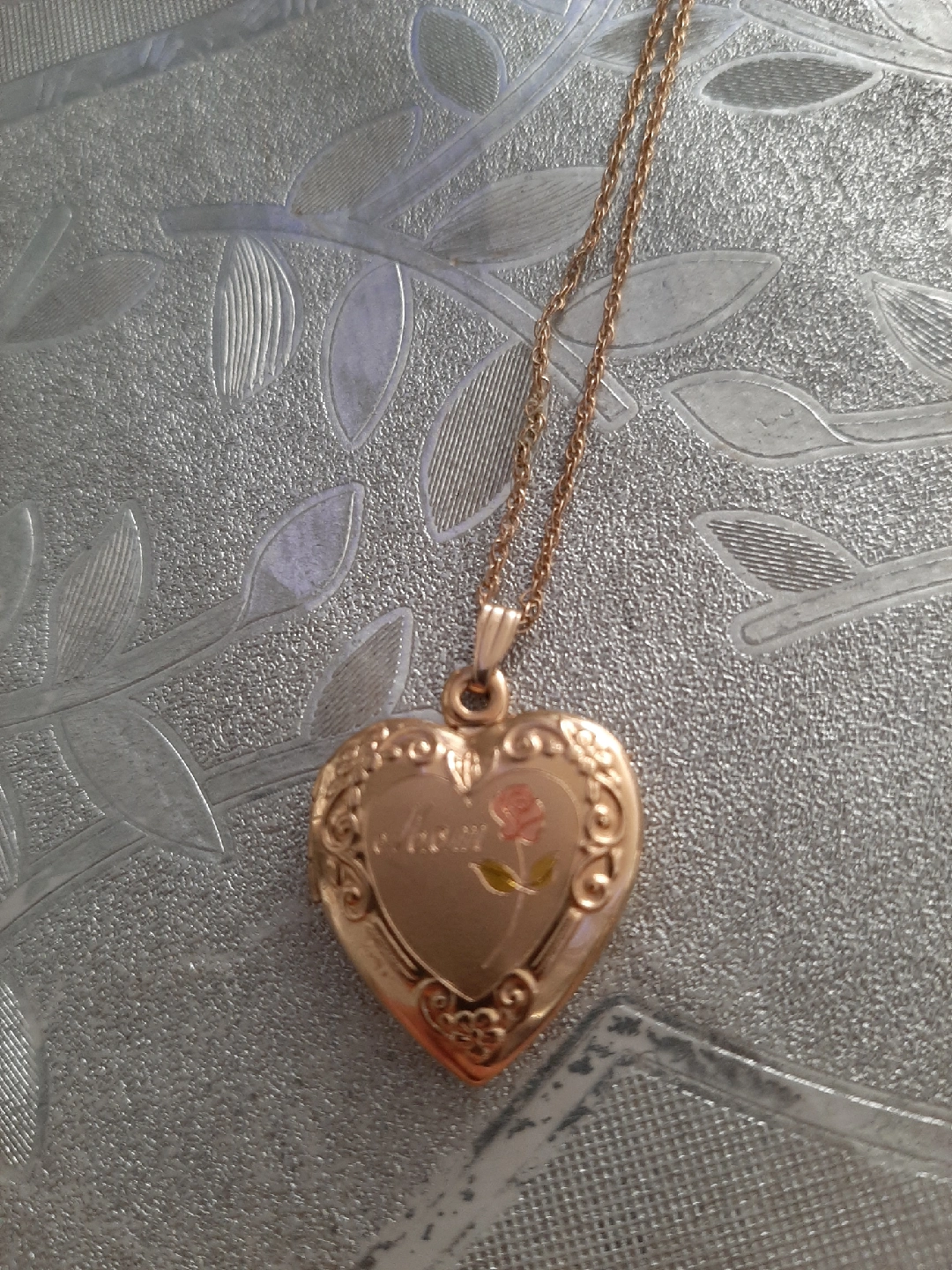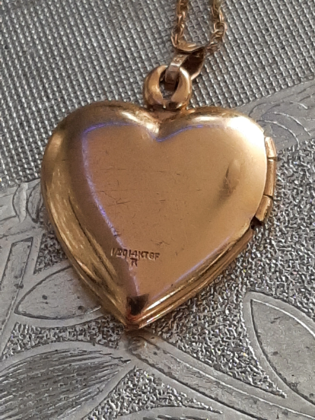 86Selling 14k gold lovely vintage gold heart locket necklace. It's in great condition and has a detailed design. Perfect for holding small photos or keepsakes!
