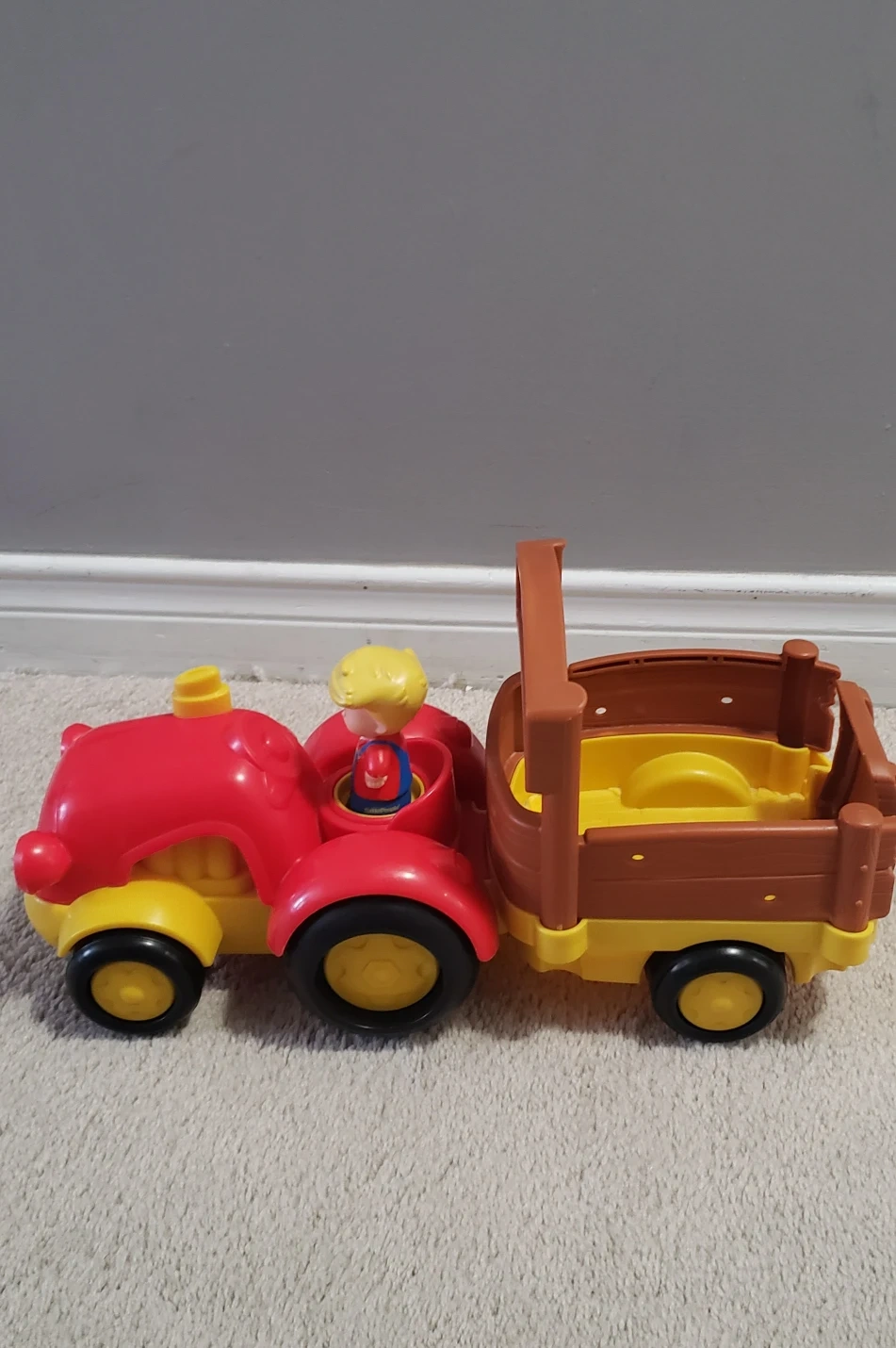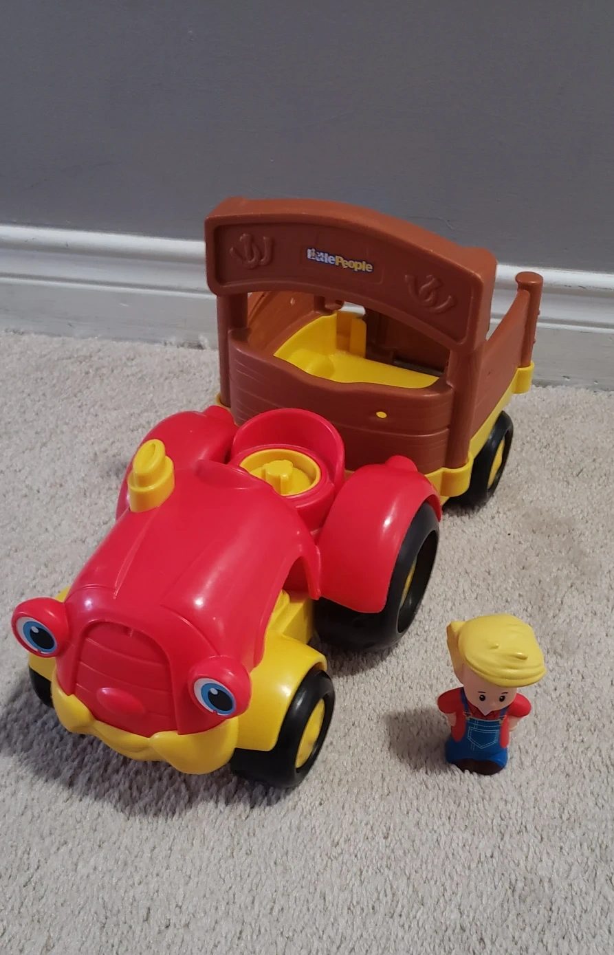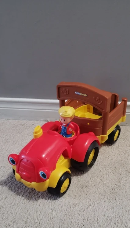 Little People tractor with trailer, perfect for little hands! Includes a figure for added fun. Great for imaginative play and developing fine motor skills