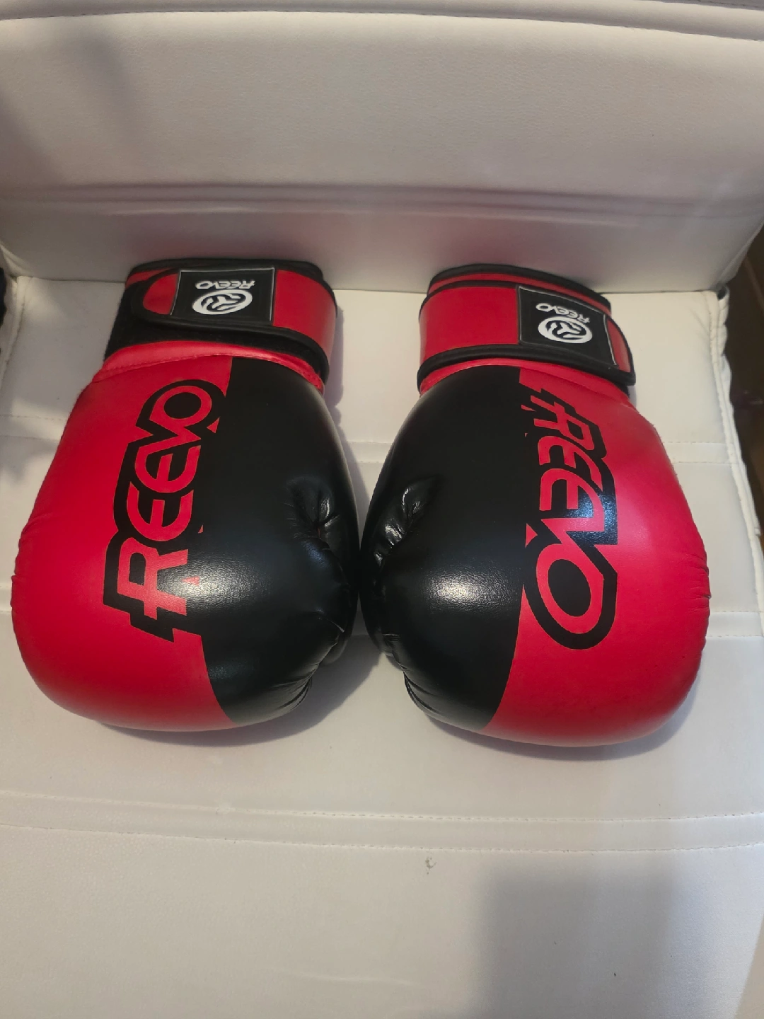Selling a pair of REEVO boxing gloves in red and black. They're in great shape and ready for your next sparring session or workout.