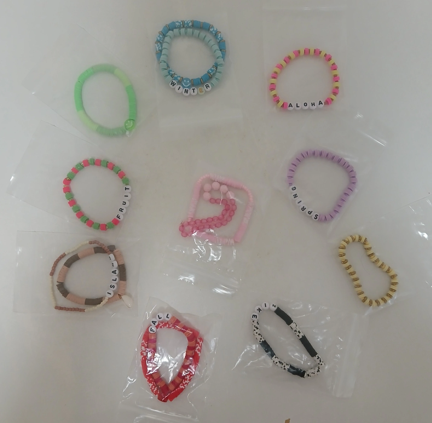 Selling a collection of handmade beaded bracelets. They come in various colours and designs! They are great for adding a pop of colour to any outfit. Check out the photos for a closer look! 1$ each .