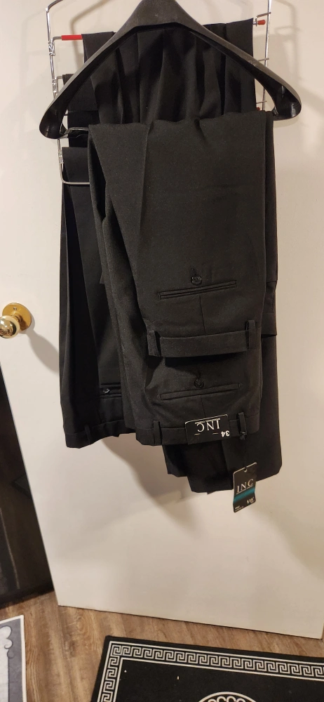 Bundle of 6 pairs of Men' s black dress pants. Size 34,and 36. Tailored fit. Asking 30 dollars each or 2 for 55 .New with tags.
