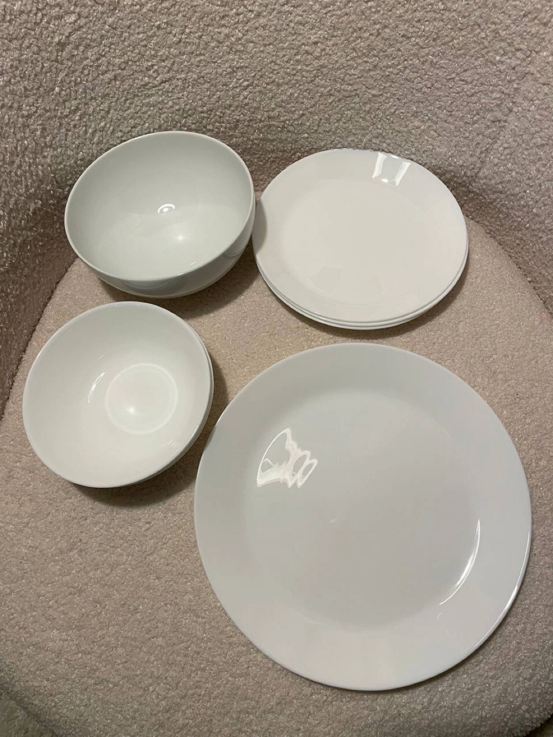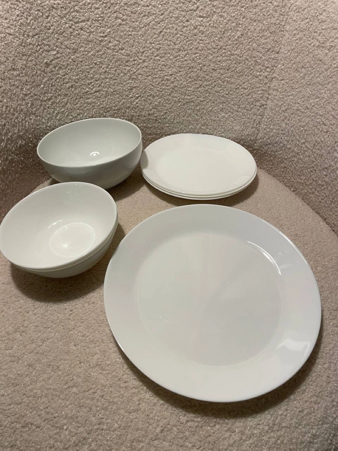 Selling a set of white plates and bowls. Perfect for everyday use or special occasions. They are in great condition and ready for a new home
