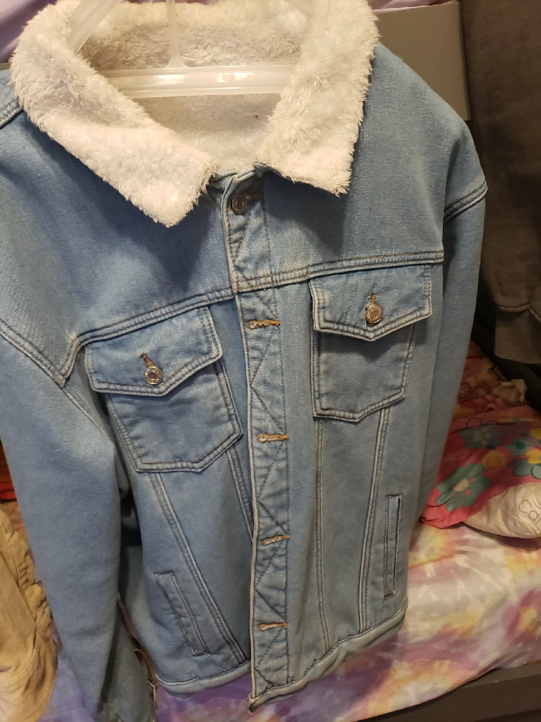 Cozy denim jacket with a soft faux fur collar! Perfect for staying warm on chilly days. It's in great condition