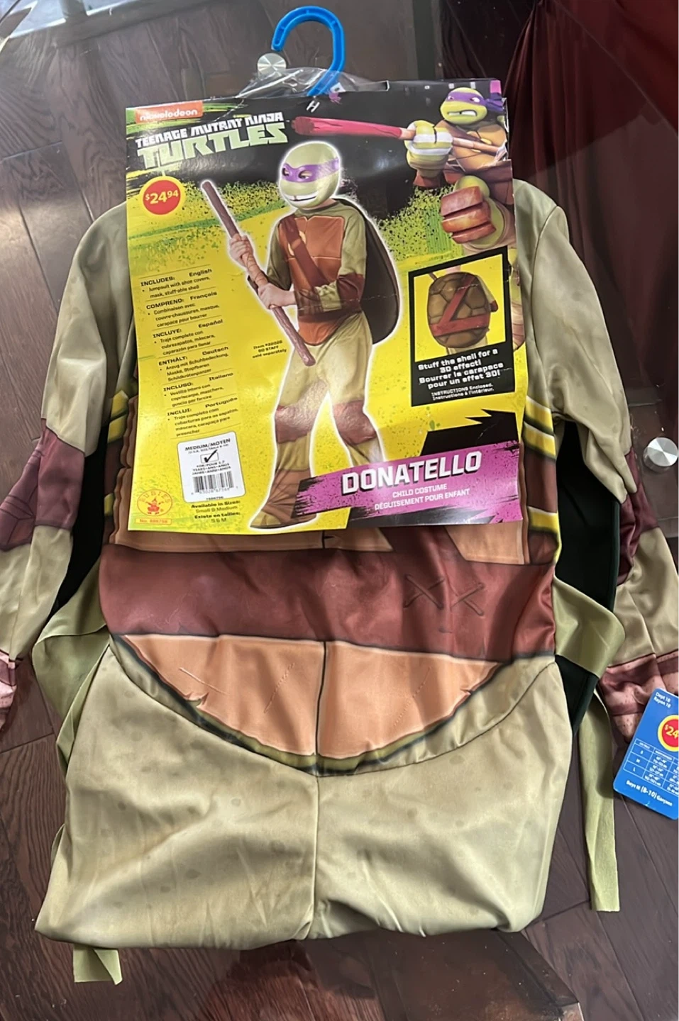 Get your little one ready to fight crime with this Teenage Mutant Ninja Turtles Donatello costume! It includes the full body suit and mask. The size is for kids aged 7-10. Originally bought for $24.94