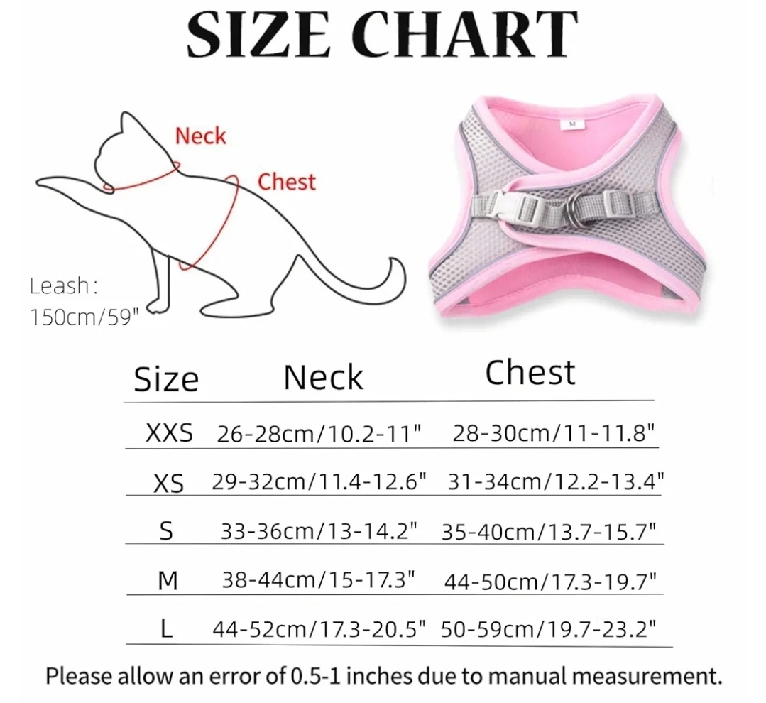 Selling a brand new cat harness with a matching leash! The harness is size XXS and features a breathable mesh design with a cute teal and grey colour scheme. Perfect for kittens or small pups! New - Kittens Harness with Leash (1.5m) Size XXS Neck 26-28cm/10.2-11" Chest 28-30cm/11-11.8"