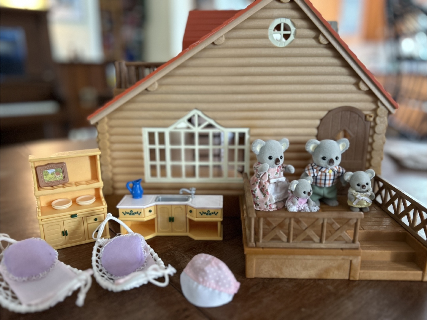 Includes everything that came with the original cabin, as well as a vintage kitchen set and accessories shown. Plus, I’m including a set of four adorable Koala figures!