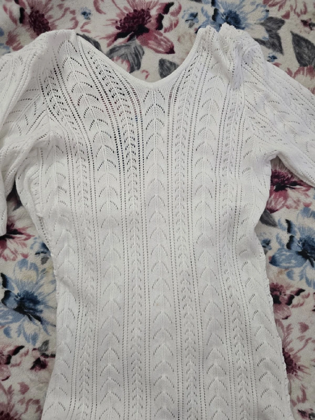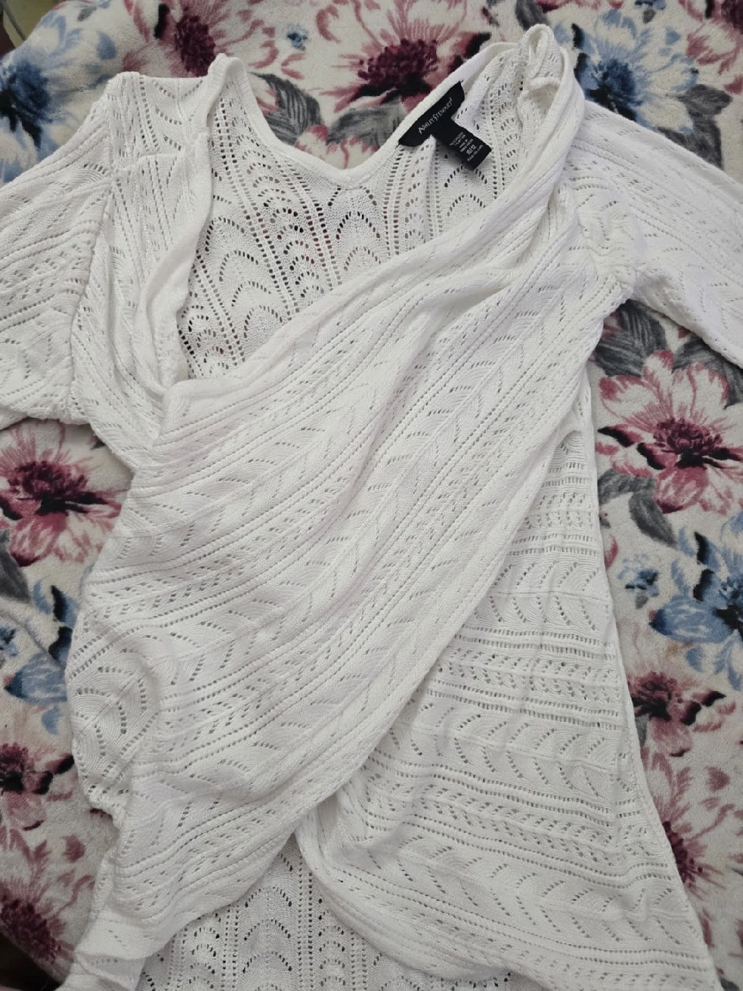 gifting white knit cardigan from Ashley Stewart in size 10/12. It's made of 95% viscose and 5% nylon. Perfect for layering!