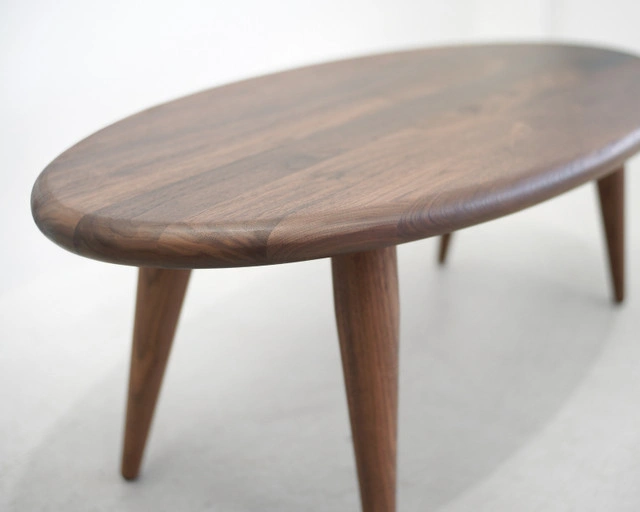 Up for sale is a Solid Black Walnut Coffee Table with hand-turned tapered legs. Crafted by a seasoned artisan from North American solid walnut and finished in hard wax oil to enhance the beauty of the natural warm tone and open grain. Dimensions: Approx. 48”W x 22”D x 16.5”H. Tabletop: Approx. 1.5" thick solid black walnut This elegant table features a modern, minimalist design and sturdy construction. NEW- never been used and freshly finished, and packaged for easy takeaway. Upgrade your home with a true buy-it-for-life piece of furniture. * We can ship with a tracking number or deliver this item for an additional charge. The shipping fee will vary depending on your location and shipping rate. Please note that the full item cost and shipping fee must be paid prior to shipping.