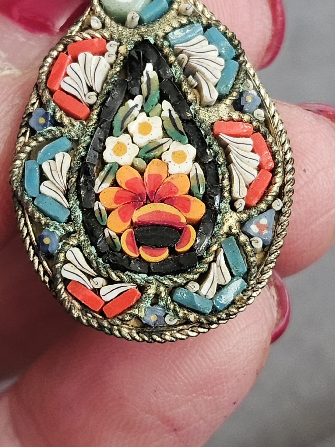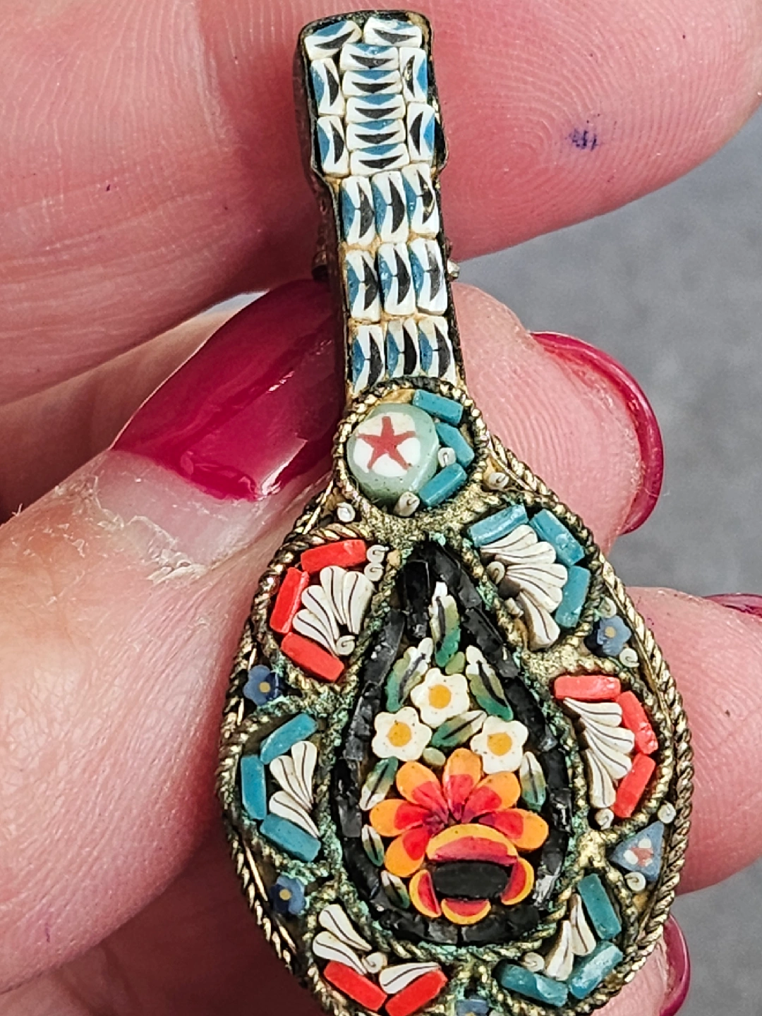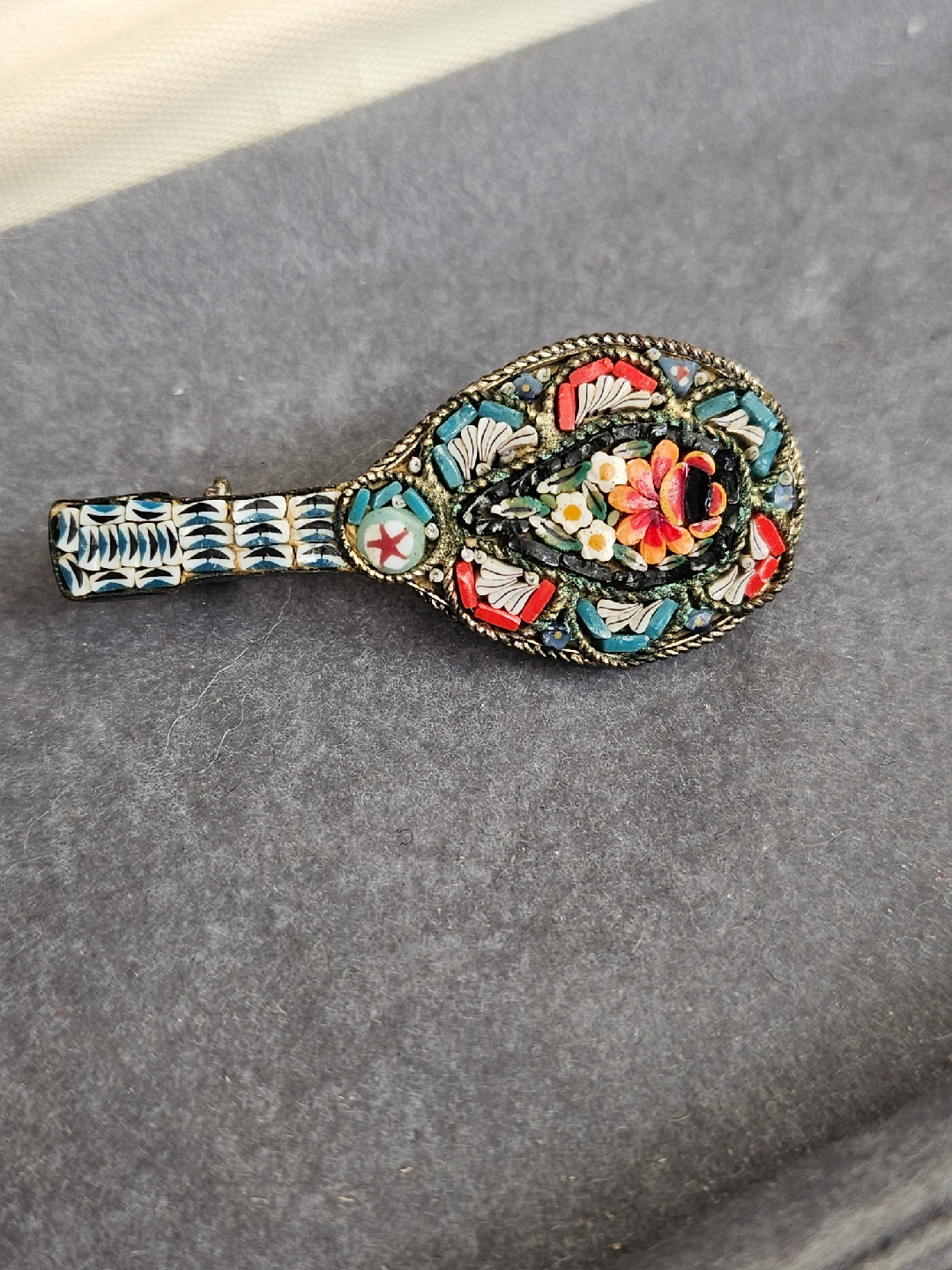 Vintage Italian Micro Mosaic Mandolin Brooch
