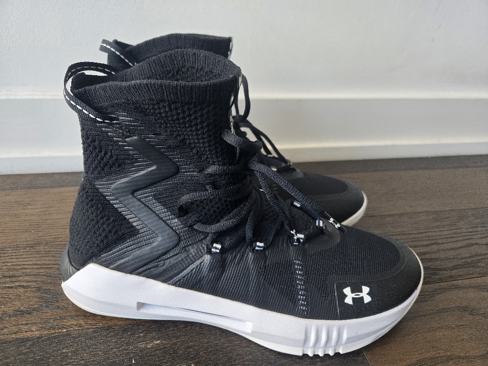 Selling a pair of Under Armour Highlight Ace 2.0 women's volleyball shoes. They're in great shape and ready for the court! The shoes are black and white, offering a sleek look. Perfect for any volleyball enthusiast looking for performance footwear