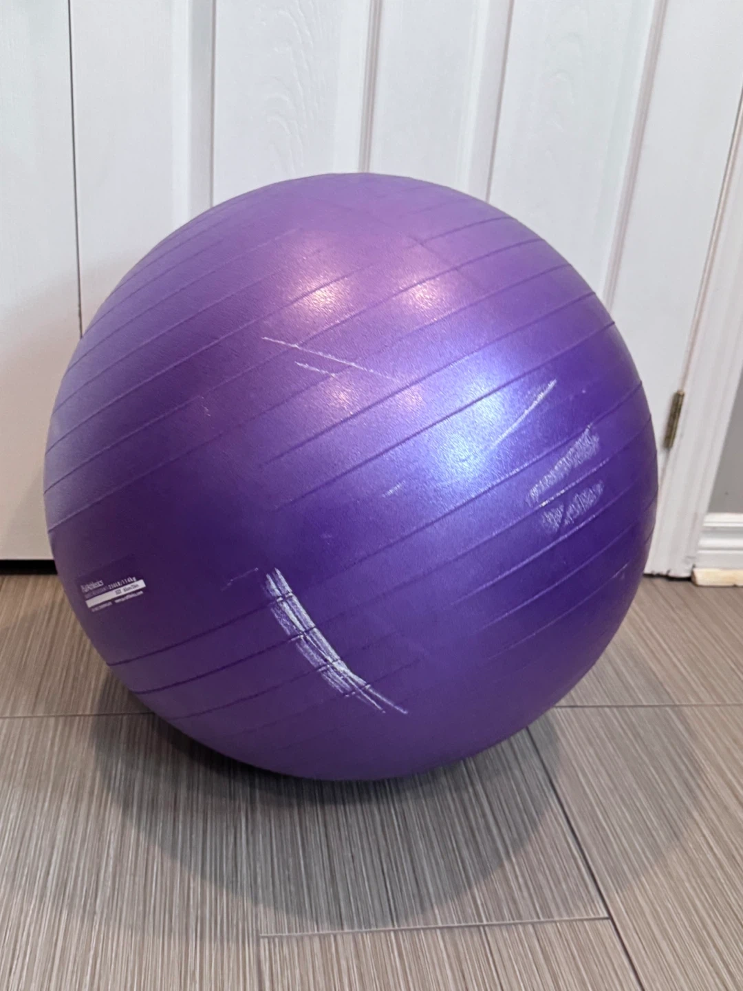 Selling my purple exercise ball, lightly used during pregnancy for yoga and stretching. It has some white markings from wall storage and a few light scratches, but itβs still fully functional and in good shape! πͺ Perfect for home workouts, physical therapy, or prenatal exercises. π΅ Fixed price: $10 π€ Pick-up only π° Cash only Affordable and useful fitness essential β ready for its next owner!