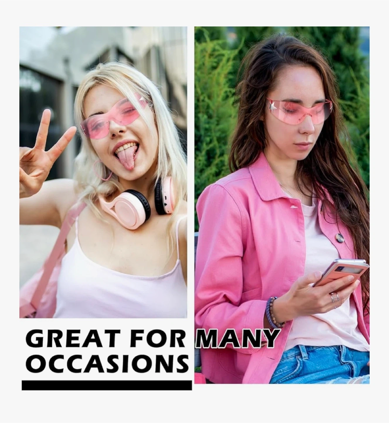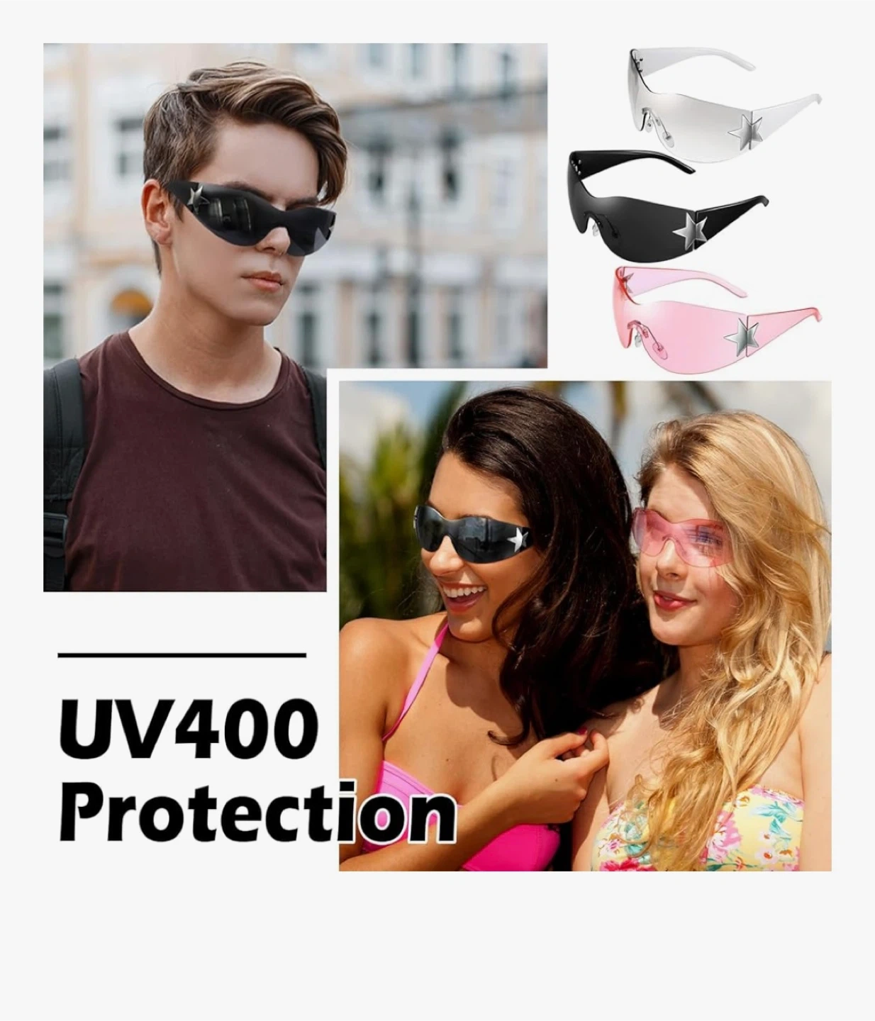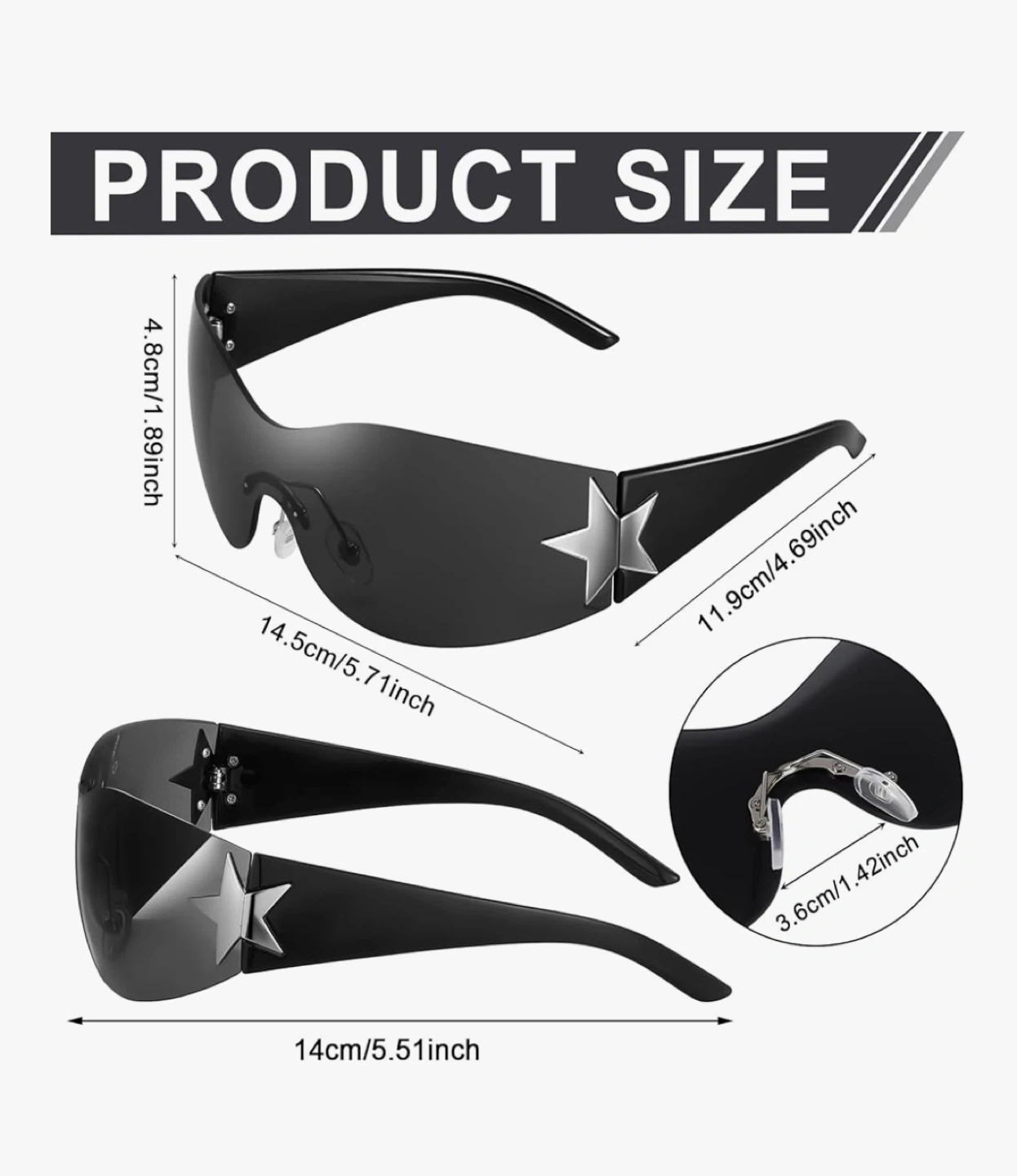 These Y2K sunglasses for women are perfect for many occasions! They feature a star detail and come in various colours. Check out the size dimensions in the photos!