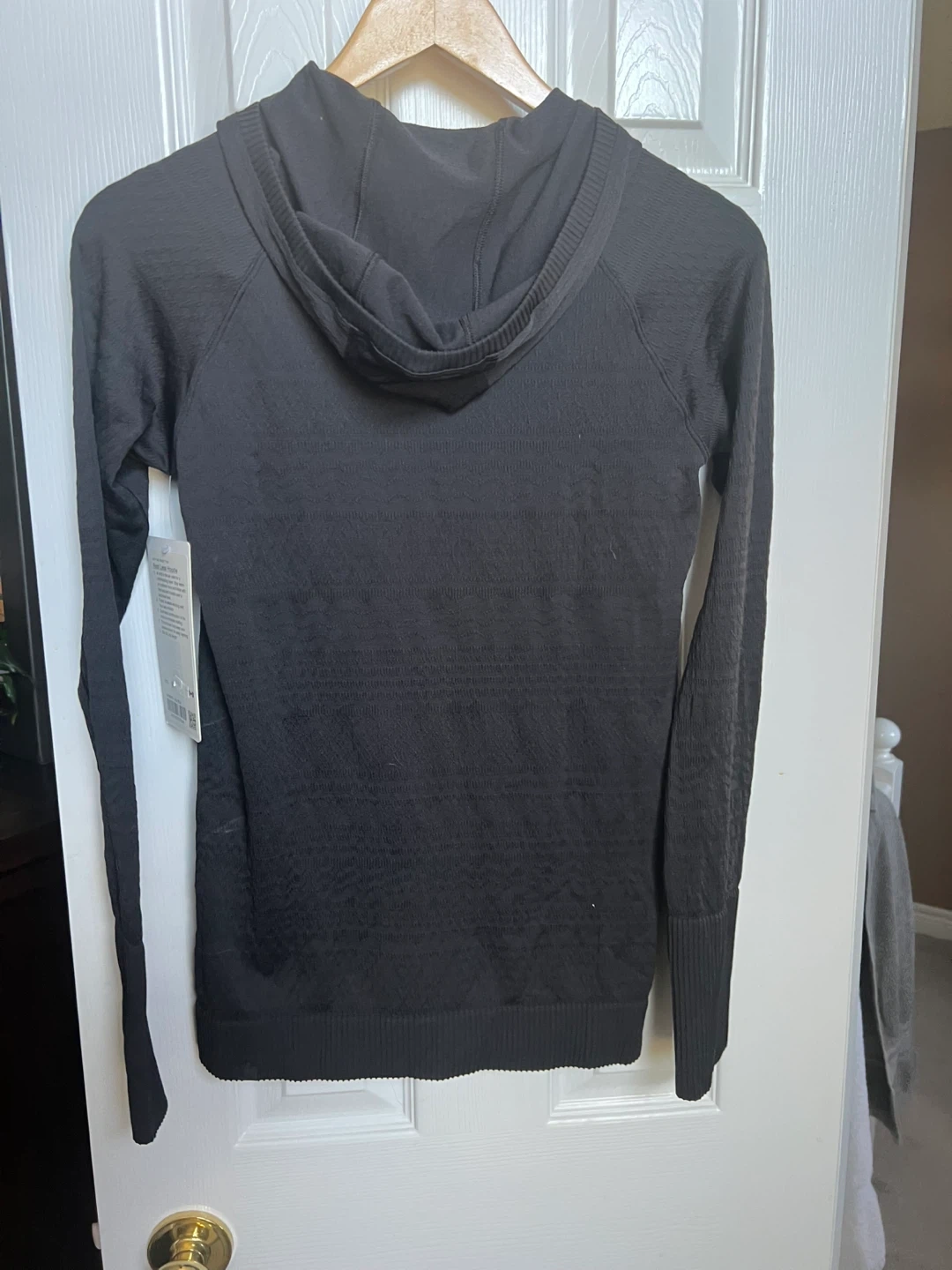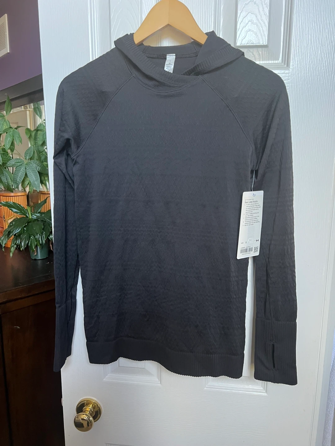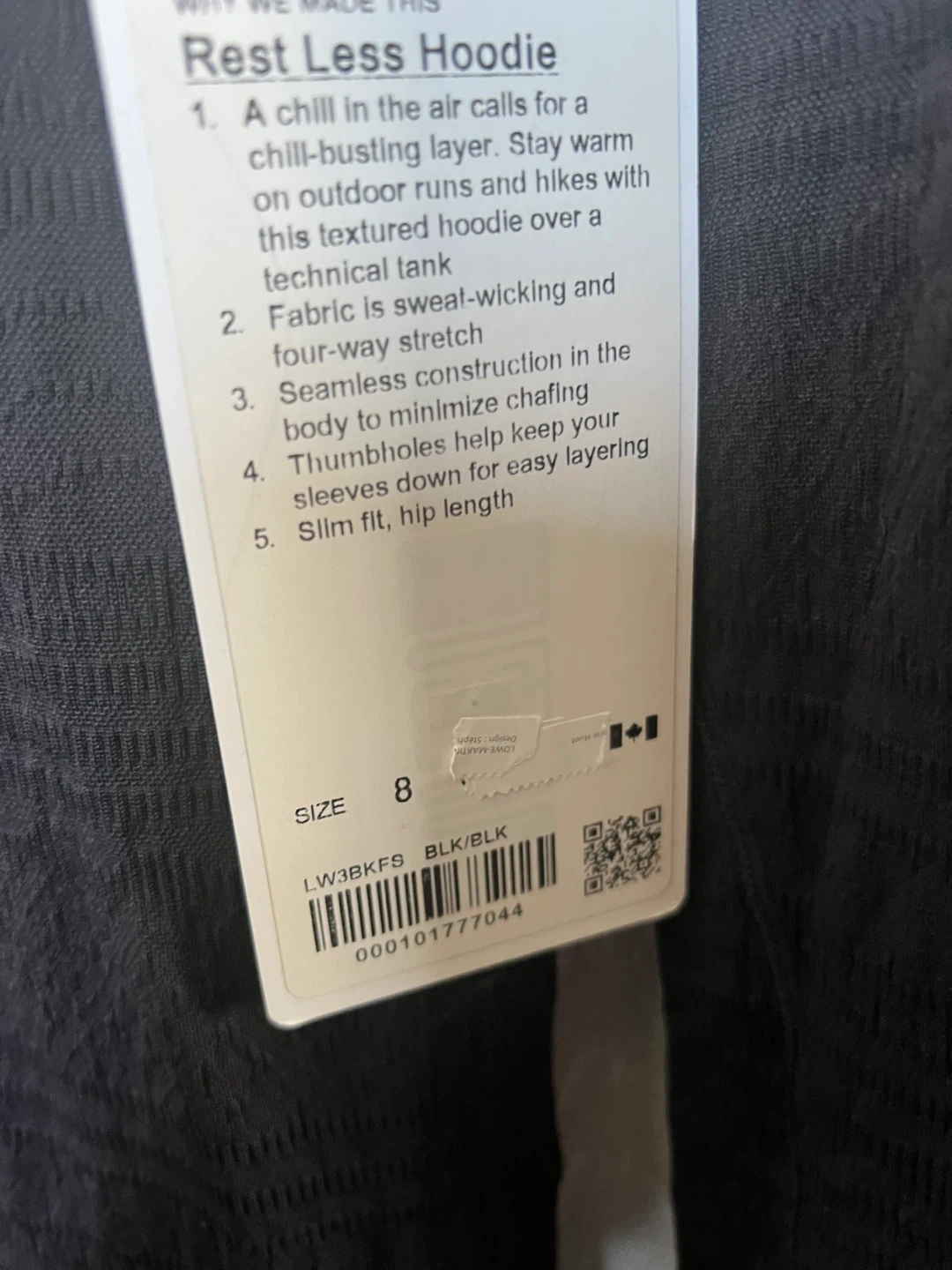 Selling a Lululemon Rest Less Hoodie in black, size 8! This hoodie is perfect for staying warm on outdoor runs and hikes. It features a textured fabric with sweat-wicking and four-way stretch. The seamless construction minimizes chafing, and thumbholes help keep your sleeves down for easy layering. Slim fit, hip length!