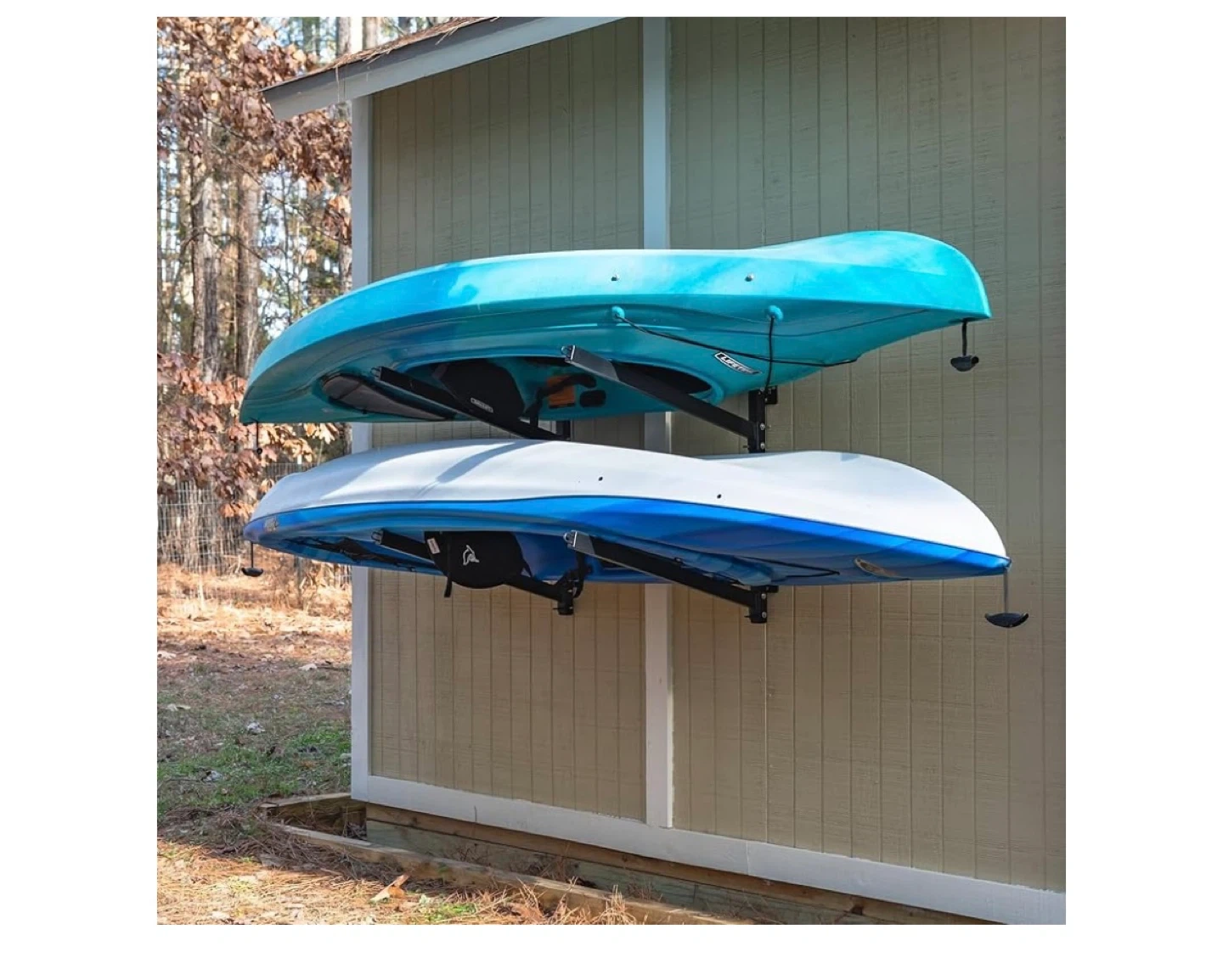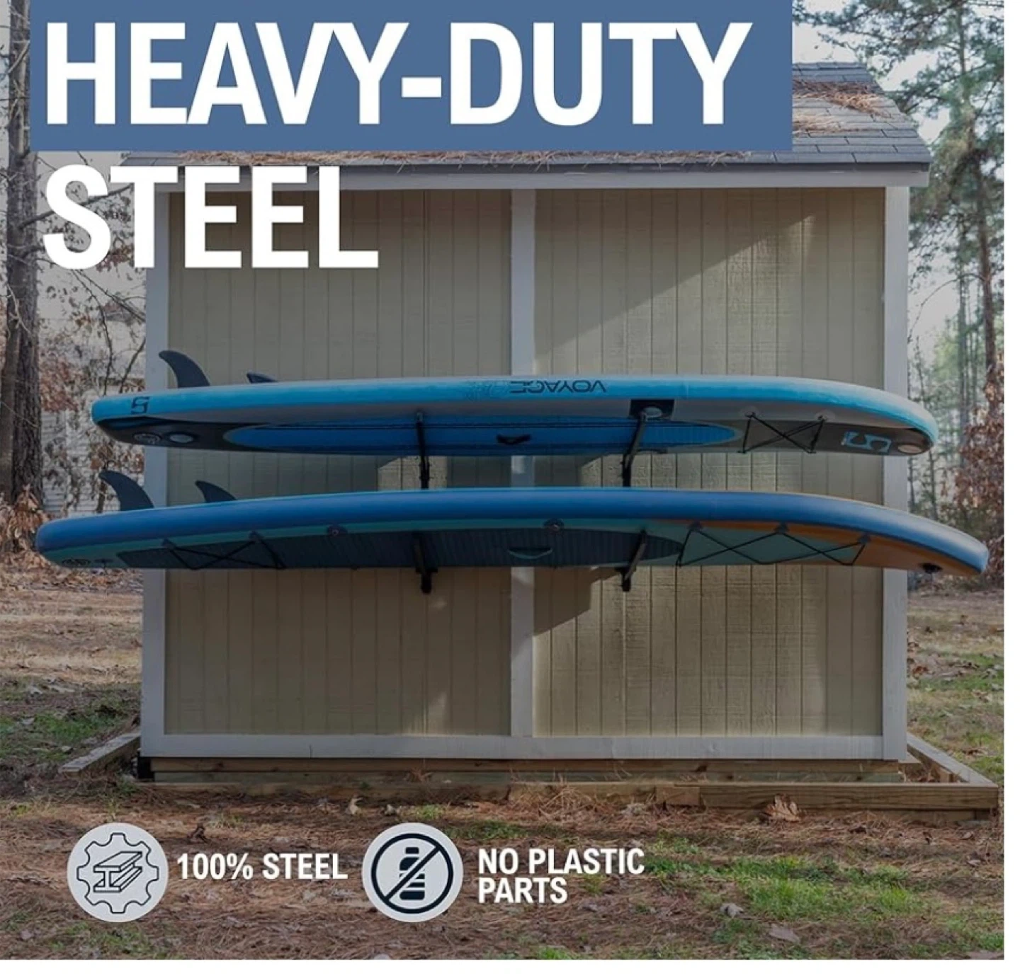177This heavy-duty steel rack is perfect for storing your kayaks or paddleboards. It's weather-resistant and has foam padding to protect your gear from scratches. The down loops keep your gear in place. Dimensions: 30" height, 26.5" depth