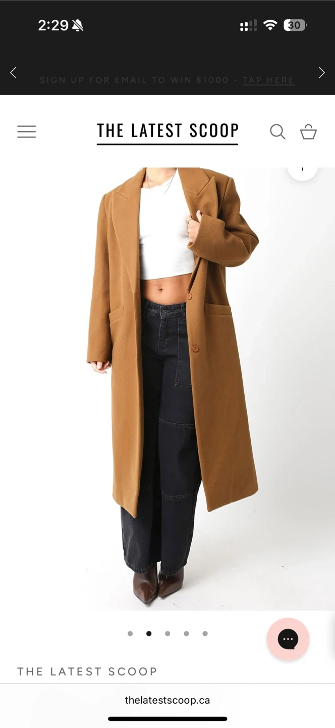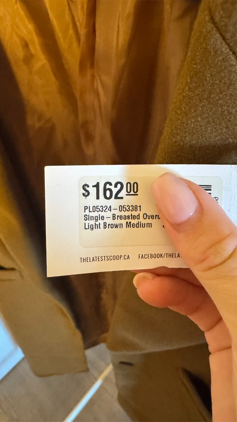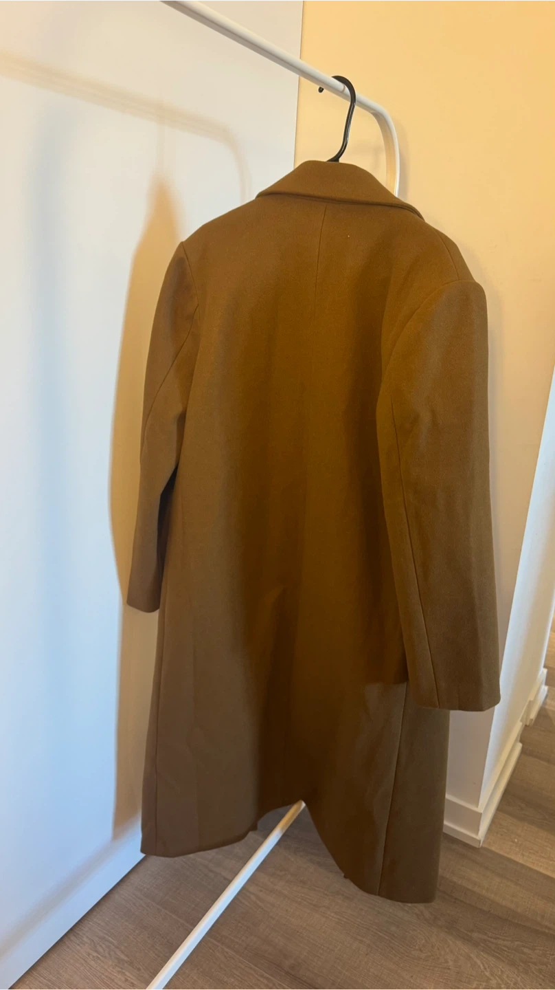 Selling a The Latest Scoop single-breasted overcoat in a light brown colour and size medium. Originally bought for $162!