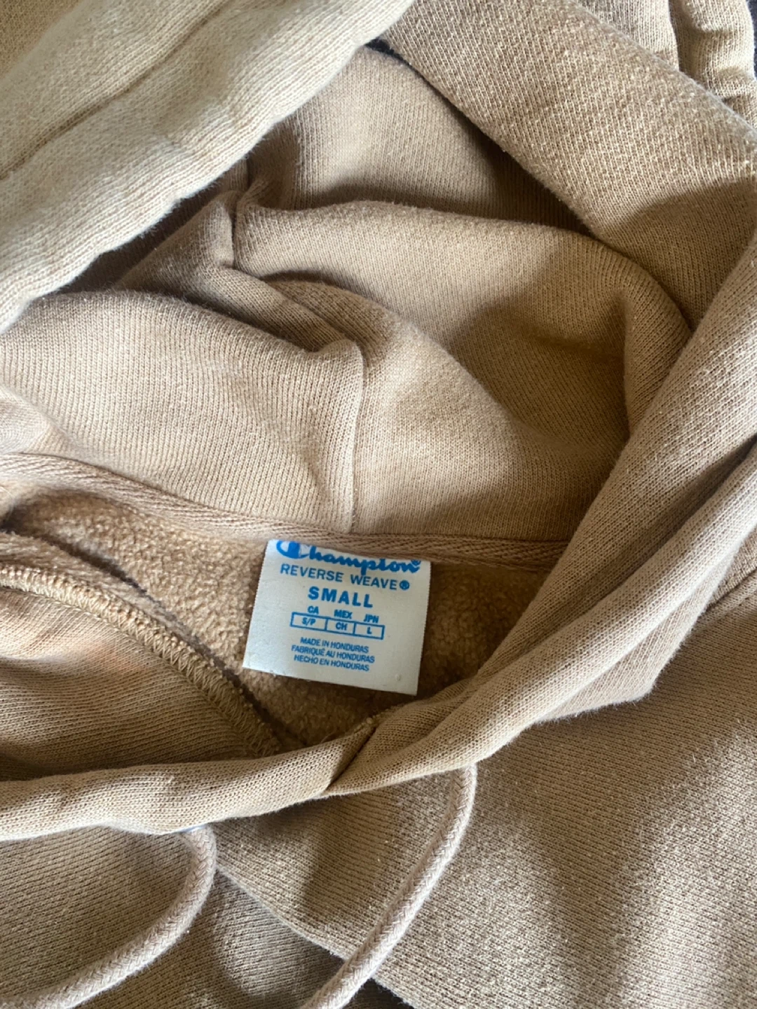 20Selling a Champion Reverse Weave hoodie in a size small. It's in great condition and ready for a new home! The colour is a neutral beige.