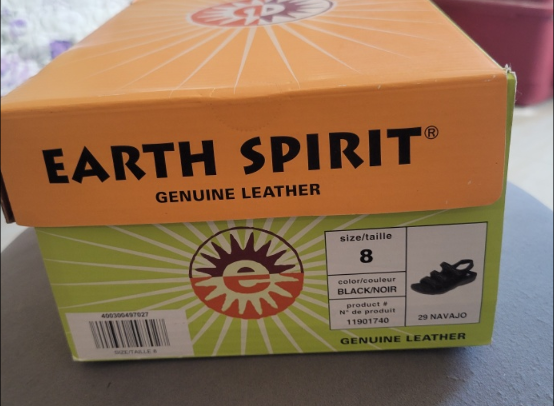 New Earth Spirit sandals in size 8! These sandals are black and made with genuine leather and velcro straps. Comes with the original box.
