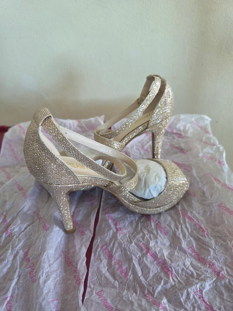 These are a pair of lovely gold heels from Dream Pairs! They are a size 6 and have a sparkly finish. Perfect for a night out or a special occasion!