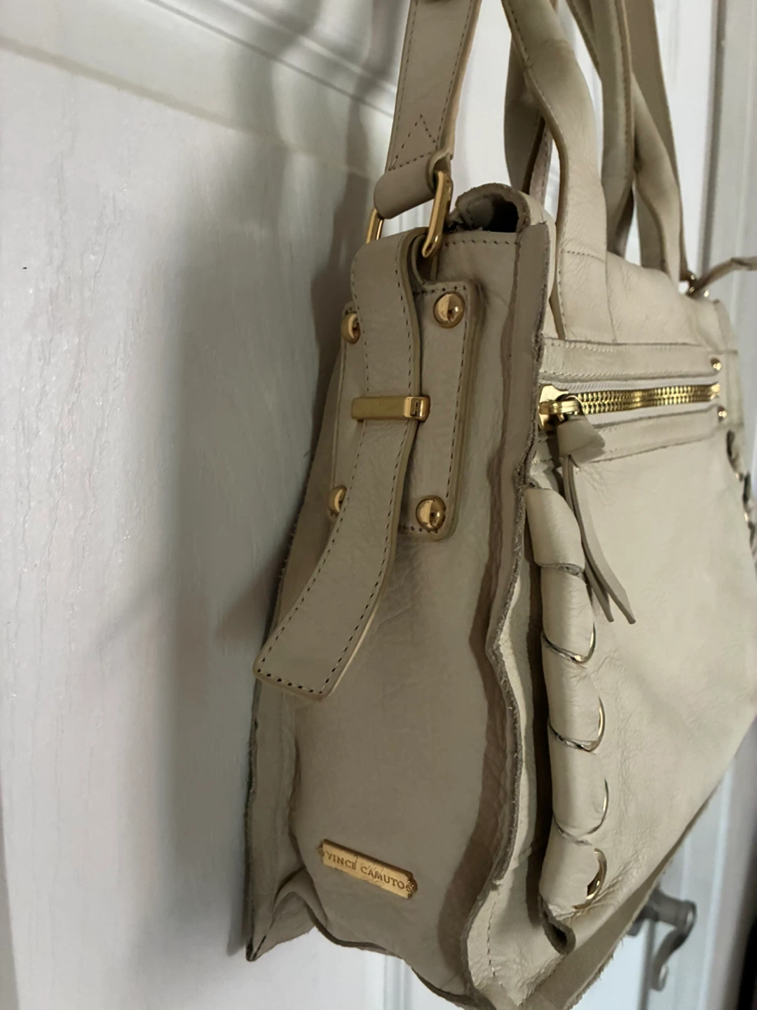 Vince Camuto Cream Leather Satchel Bag/purse
