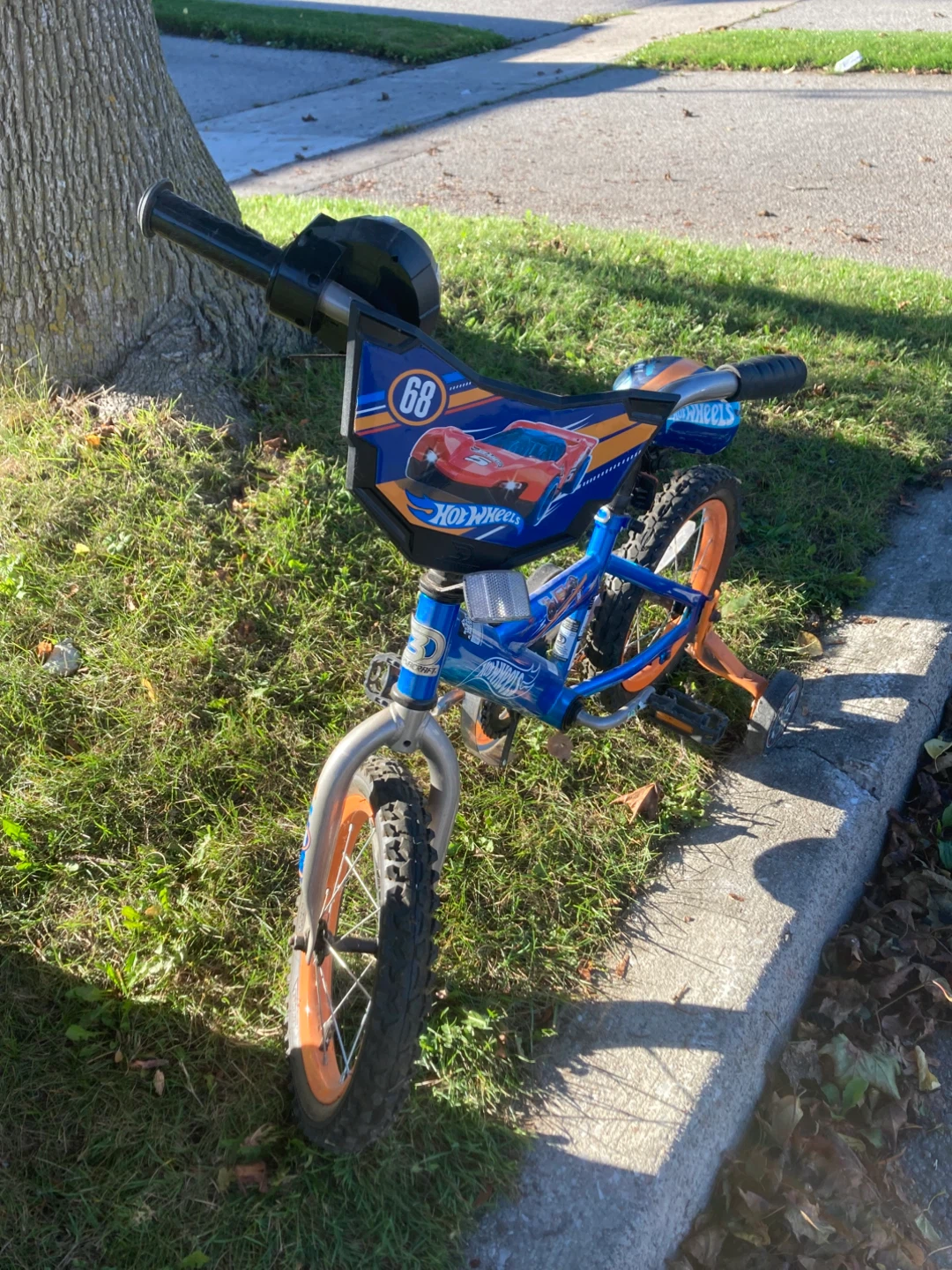 Selling a fun Hot Wheels kids' bike! It's blue and orange, perfect for a young cyclist. Great for learning to ride!