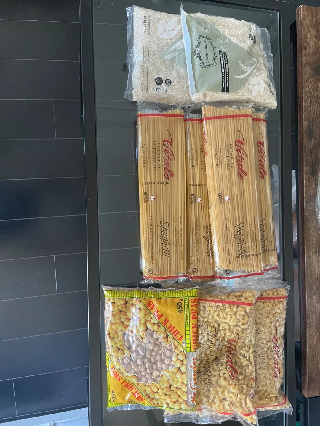 Selling a variety of pantry staples! Includes Buckingham Table Classic White Rice, Vitale Spaghetti, Chick Peas, and Elbow Macaroni. Perfect for stocking up your kitchen with some essentials.ext:2027