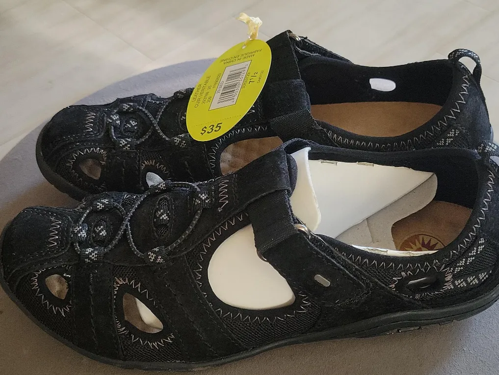 These Earth Spirit shoes are brand new with tags! They are black and a size 7.5. The original price was $35. They have a unique design with a strap and decorative lacing. Perfect for adding a touch of style to your everyday look!
