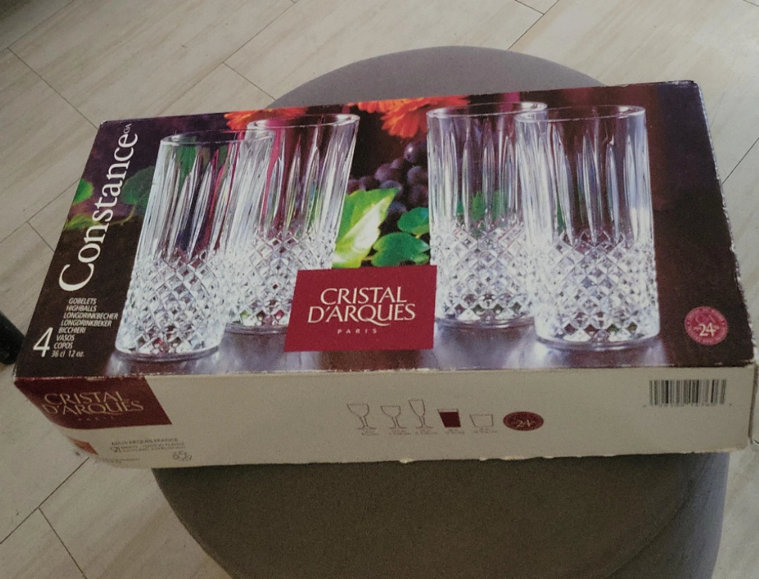 Selling a set of 4 Cristal D'Arques Constance highball glasses. These glasses are 36 cl / 12 oz each and are perfect for any occasion!