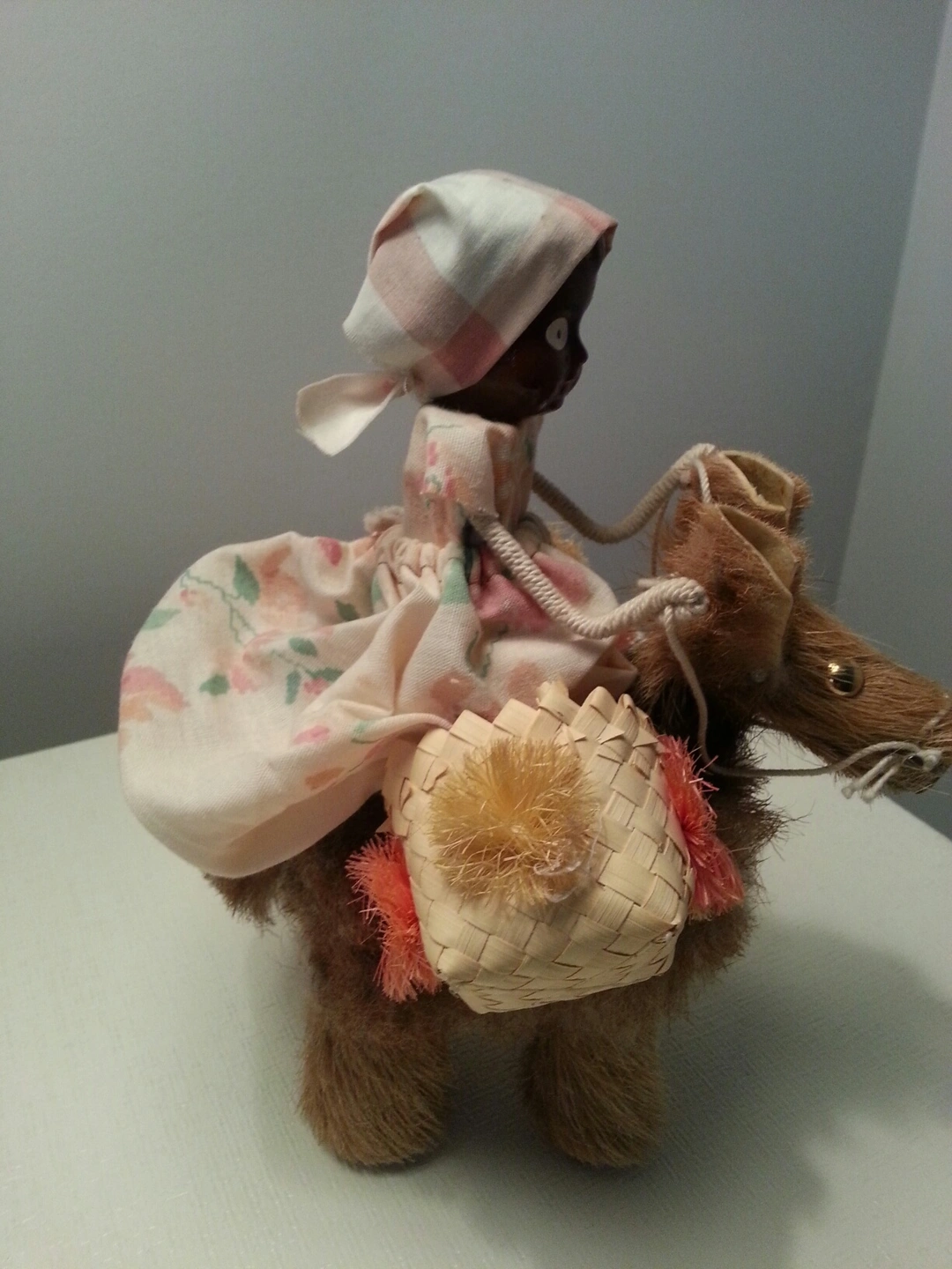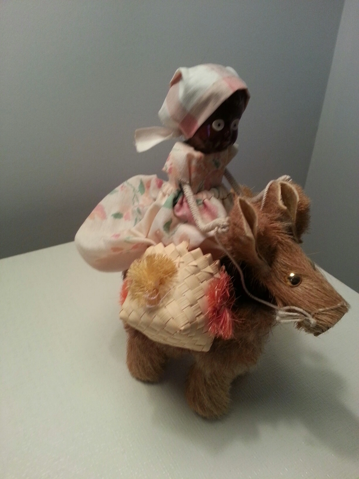10-9 1/2" tall -fuzzy fabric covers wooden donkey -real woven baskets -excellent condition -Dufferin & Rutherford ( north Toronto )