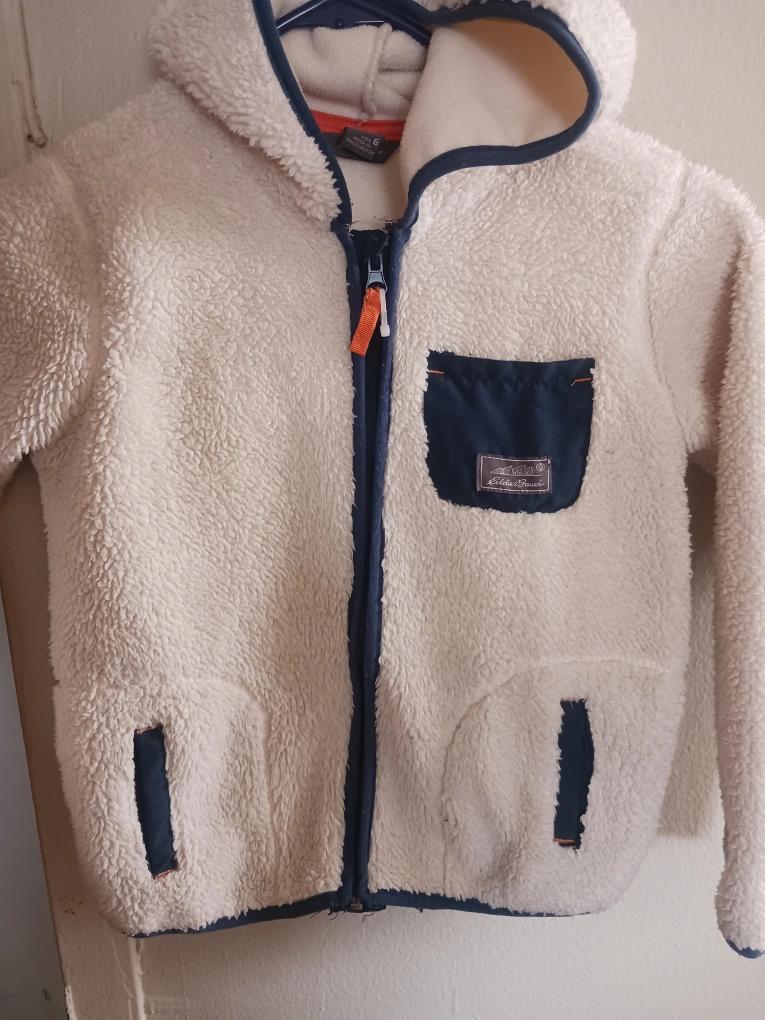 Selling a cute Eddie Bauer fleece hooded jacket in size 6. It's in great condition and perfect for keeping your little one warm and cozy!
