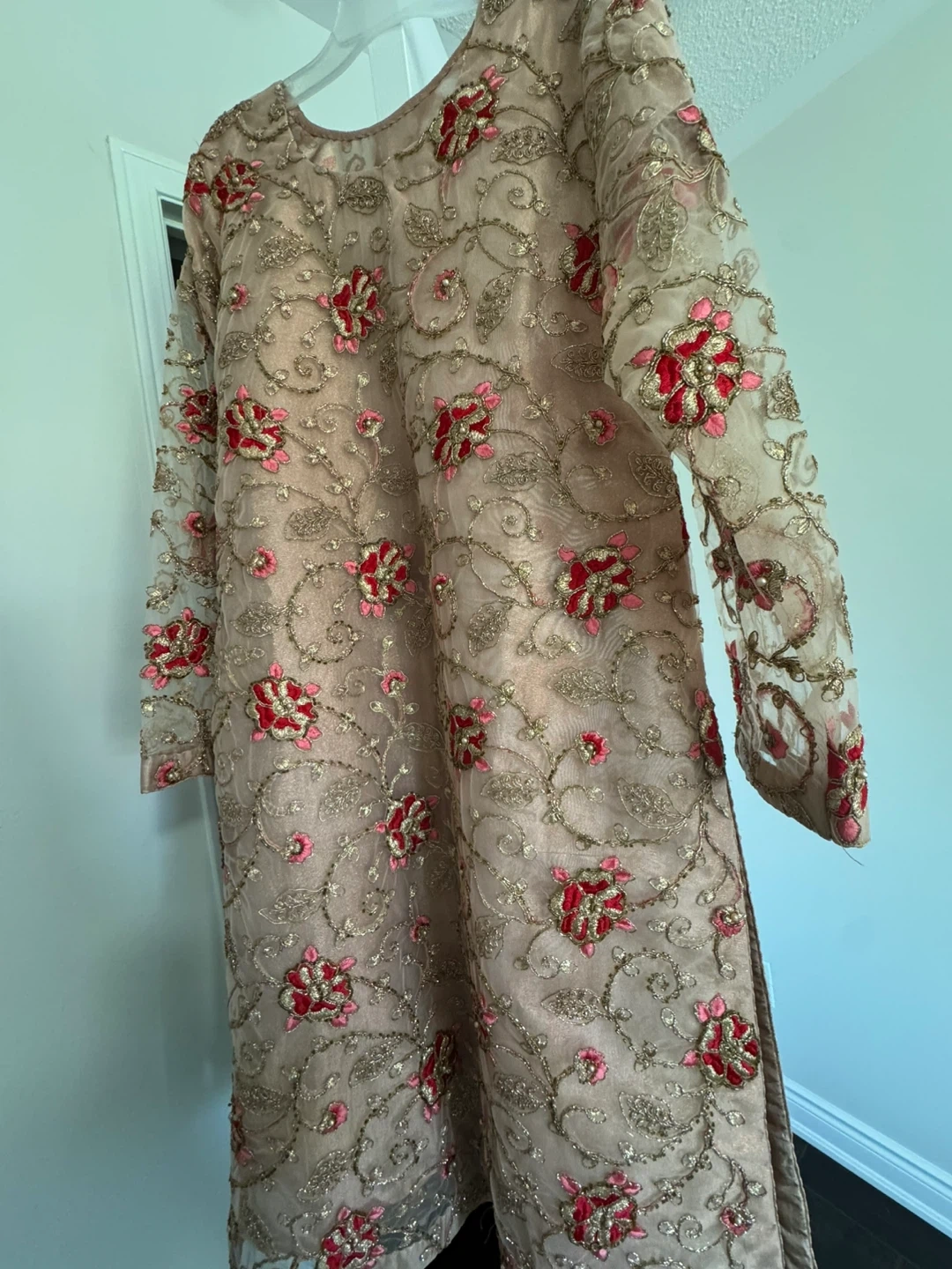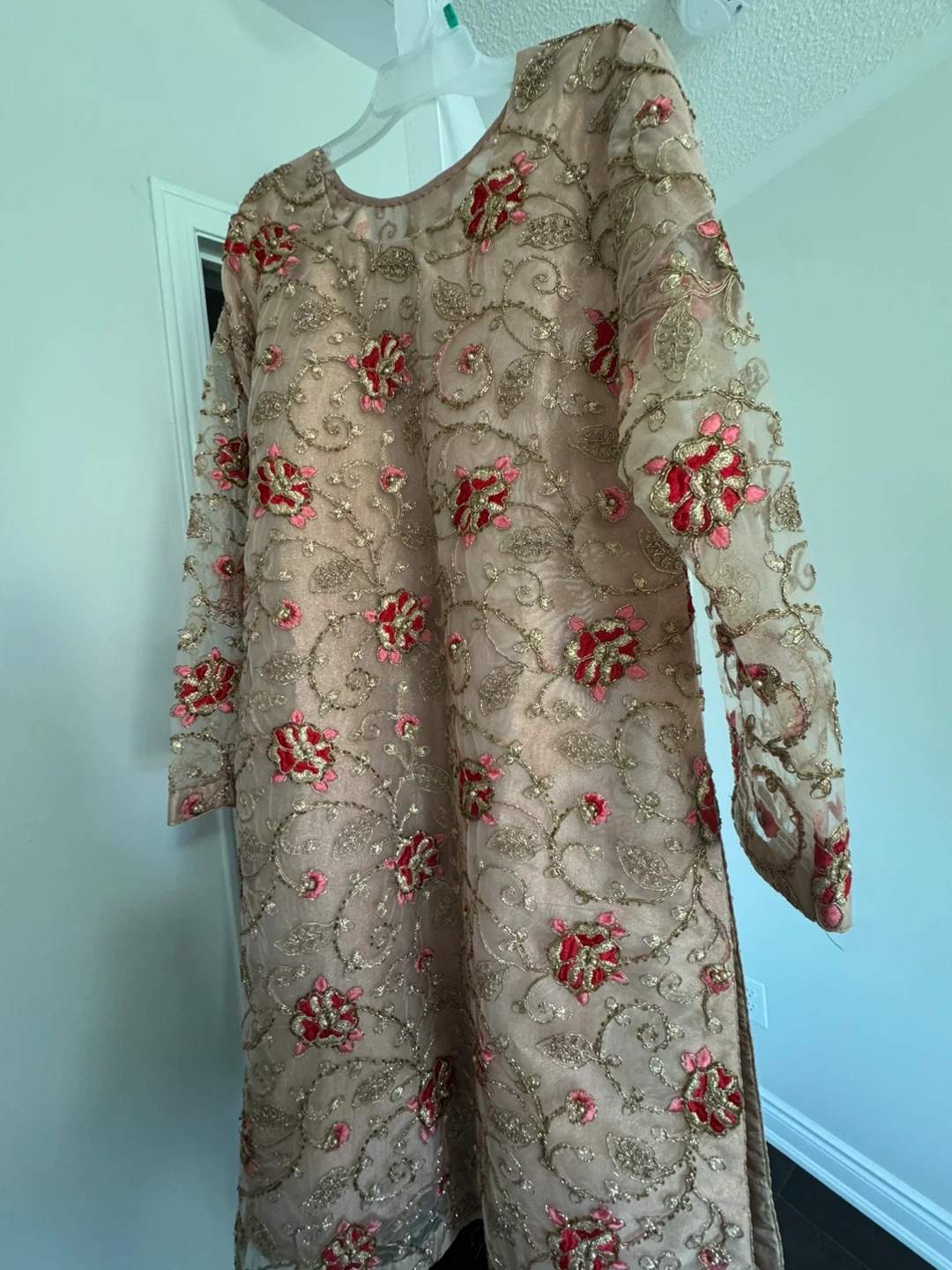 Hi i have fancy party wear 3 piece dress. Embroidered size medium .