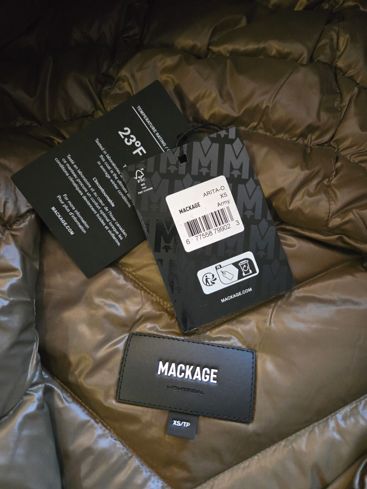 Selling a Mackage Arita-O down coat in size XS and an army green colour! It's in great condition and ready to keep you warm this winter. The coat is tested for Canadian winters, so you know it's durable and warm!