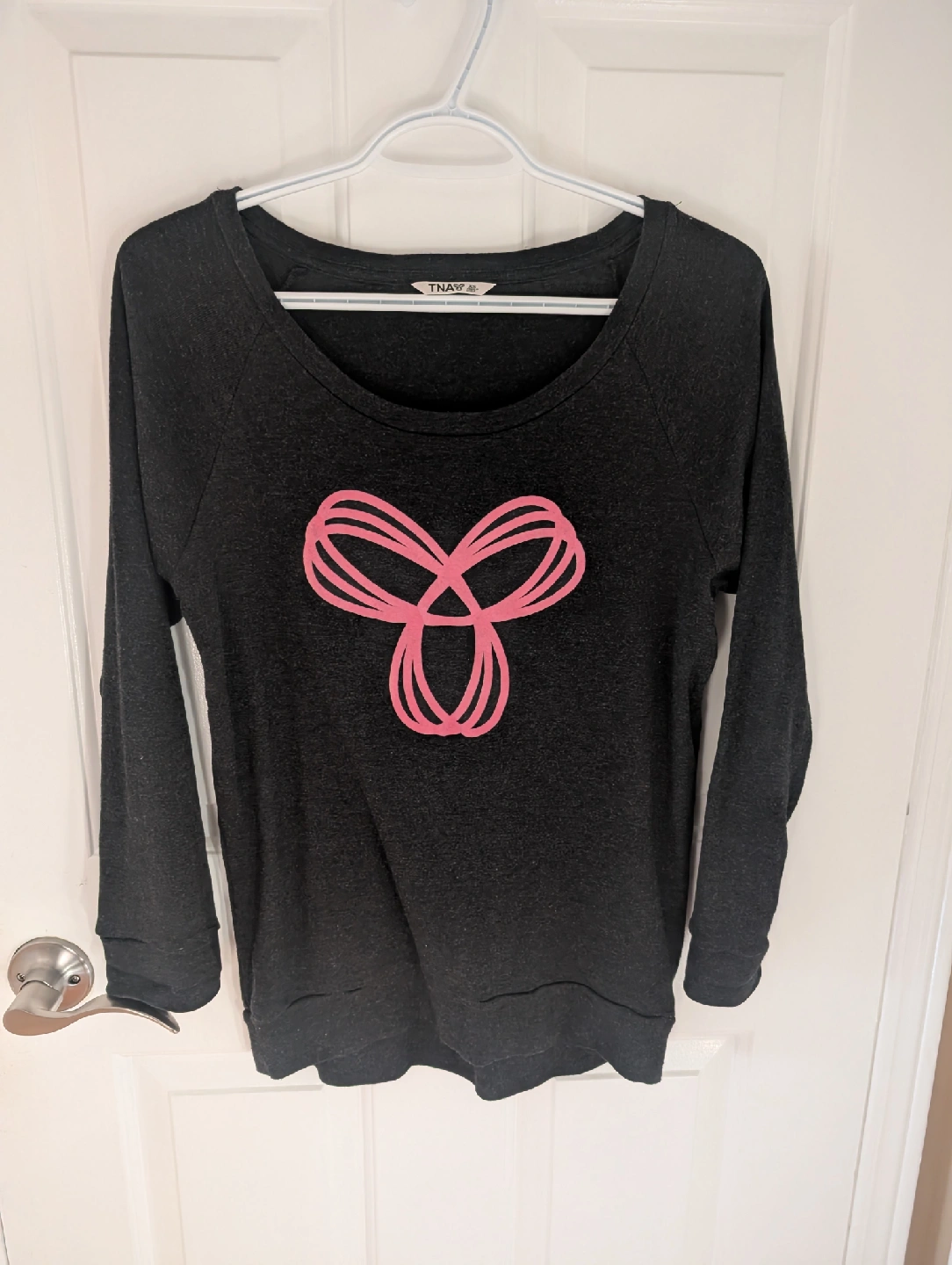 Selling a TNA long sleeve top in size XS, fits S/M! It's a grey colour with the TNA logo on the front. Great for layering or wearing on its own
