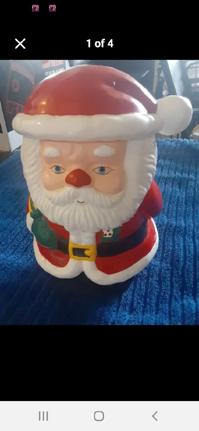 Selling a vintage Santa Claus cookie jar. It's in great condition and would be perfect for the holidays!