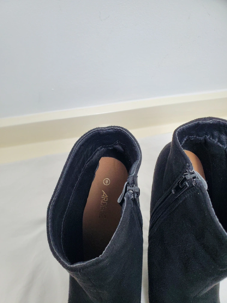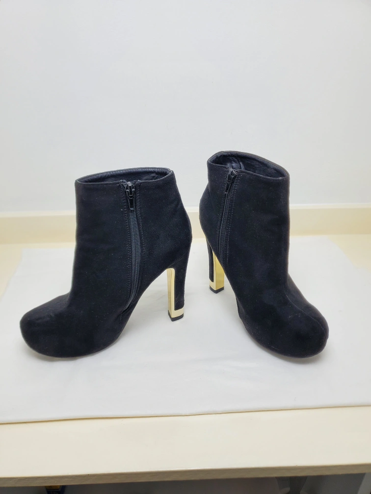 Cute pair of black heeled booties from Ardene! They're a size 8 and feature a stylish heel. Perfect for dressing up or down. Used once.